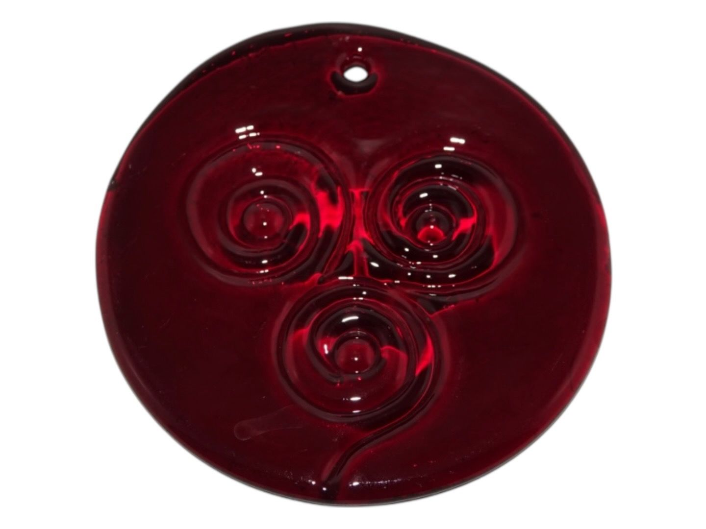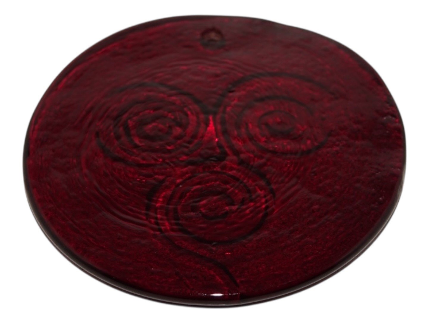 Holmegaard, lille mørkerød solfanger fra 1970'erne.Diameter 8,5 cm.