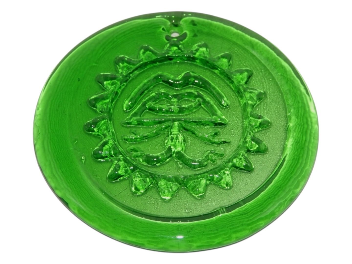 Holmegaard grøn solfanger fra 1970'erne.Diameter 12,3 cm.