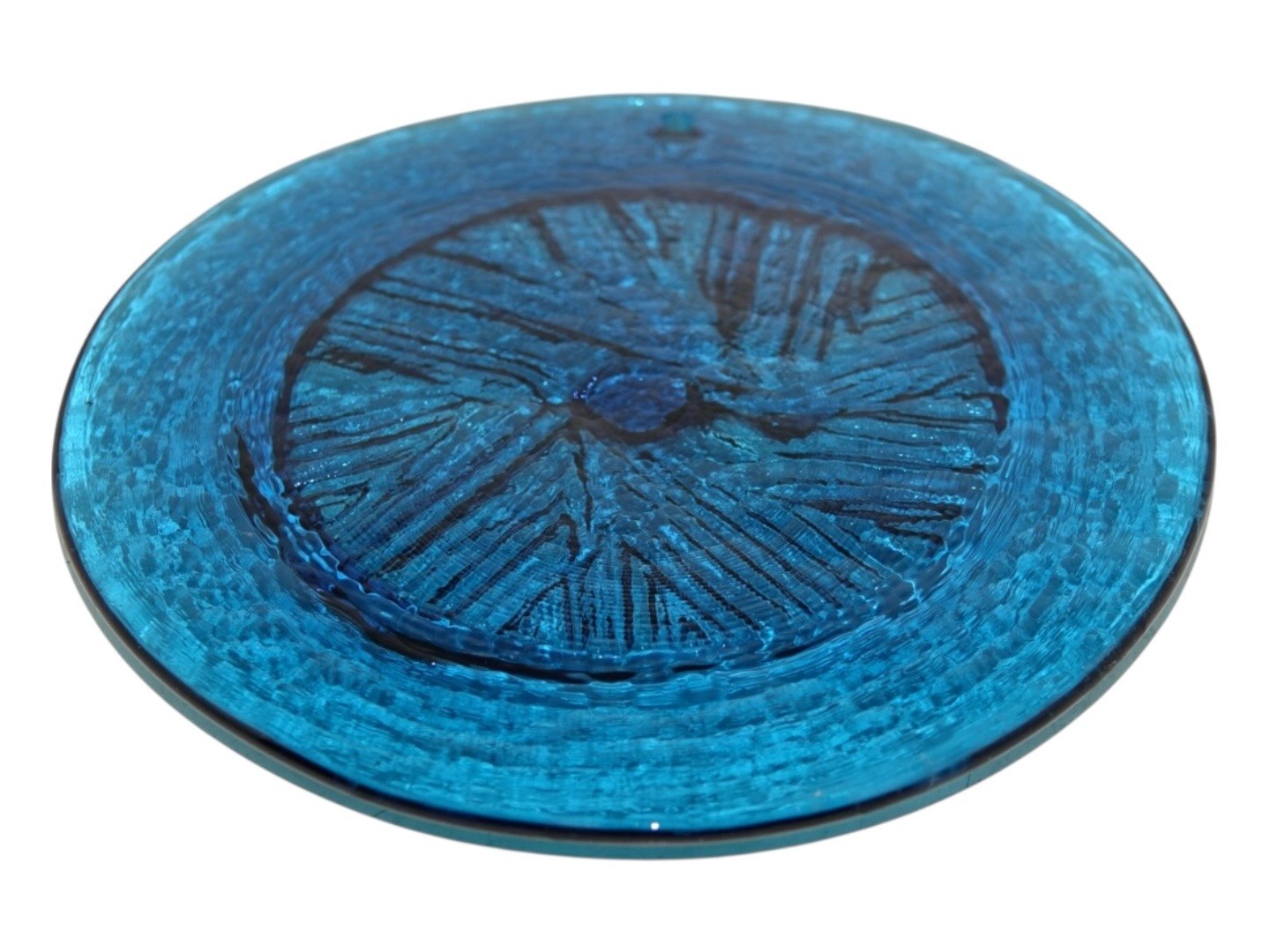 Holmegaard, lyseblå solfanger fra 1970'erne.Diameter 14,5 cm.