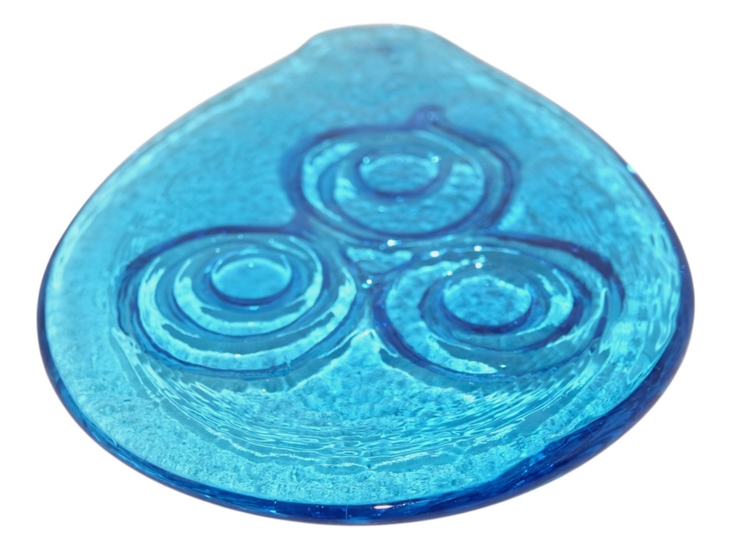 Holmegaard, lyseblå dråbeformet solfanger fra 1970'erne.Måler 18,5 x 13,4 cm.
