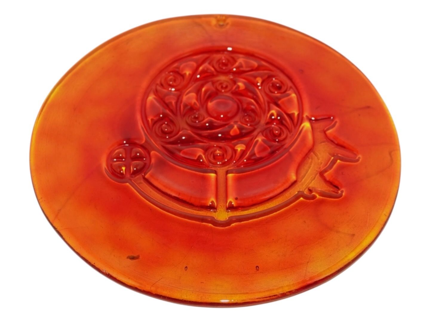 Holmegaard, stor orangerød solfanger fra 1970'erne.Diameter 17,5 cm.