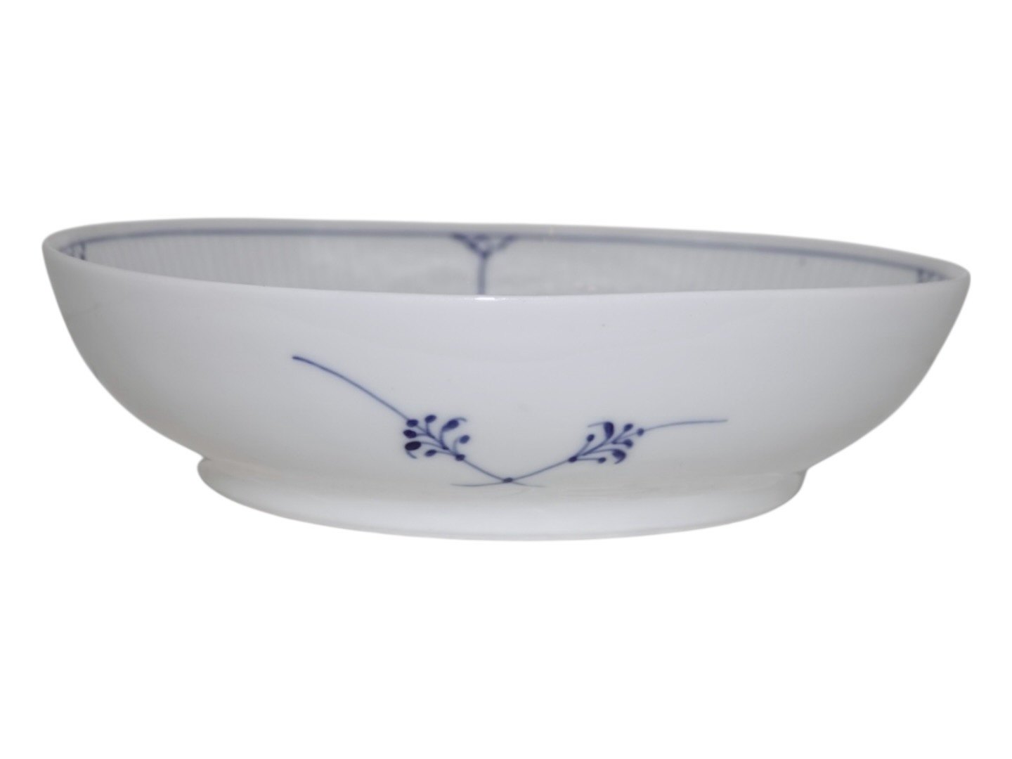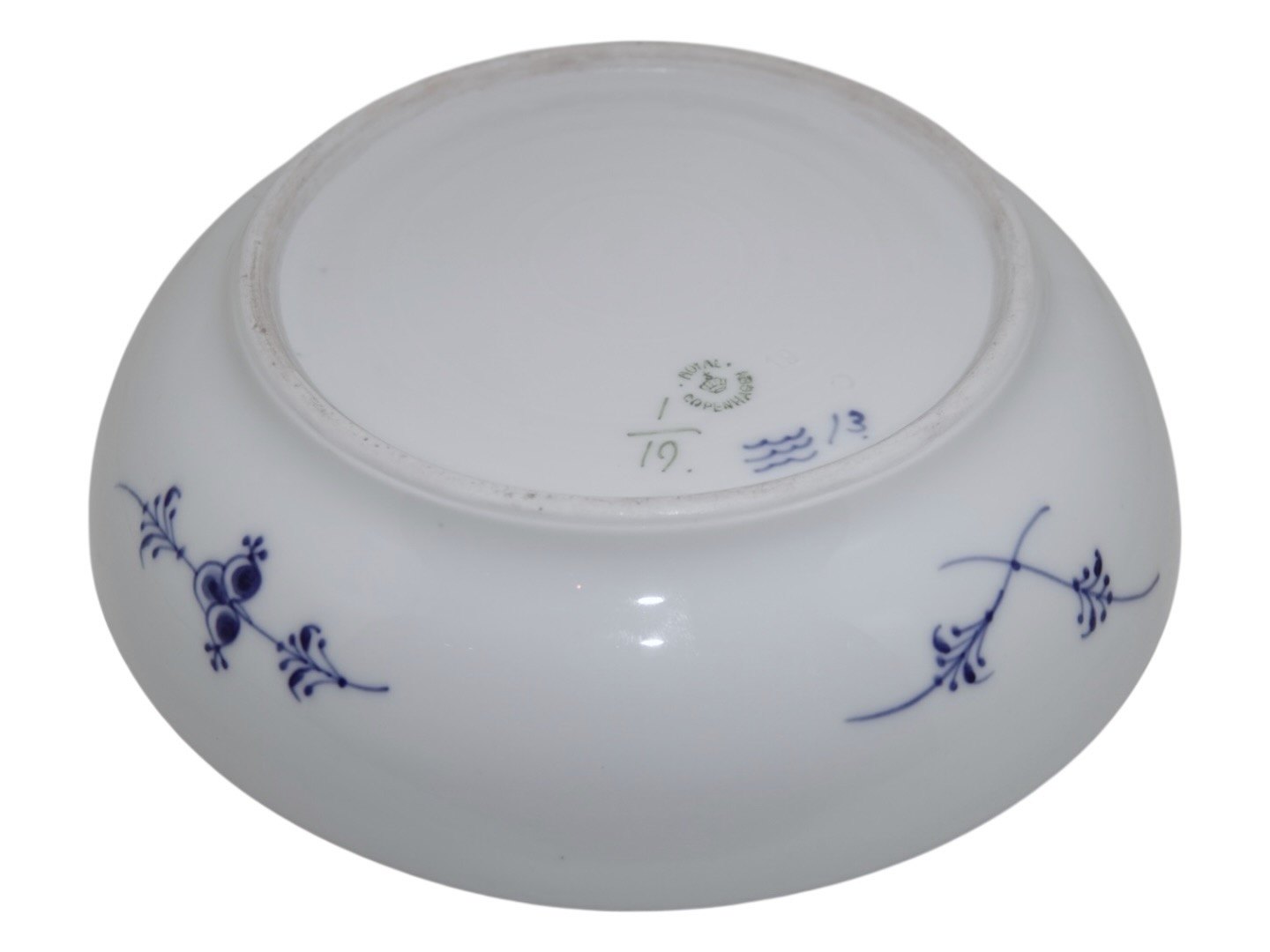 Royal Copenhagen Musselmalet Riflet, rund kartoffelskål.Af fabriksmærket ses det, at denne er produceret i mellem 1898 og 1923.