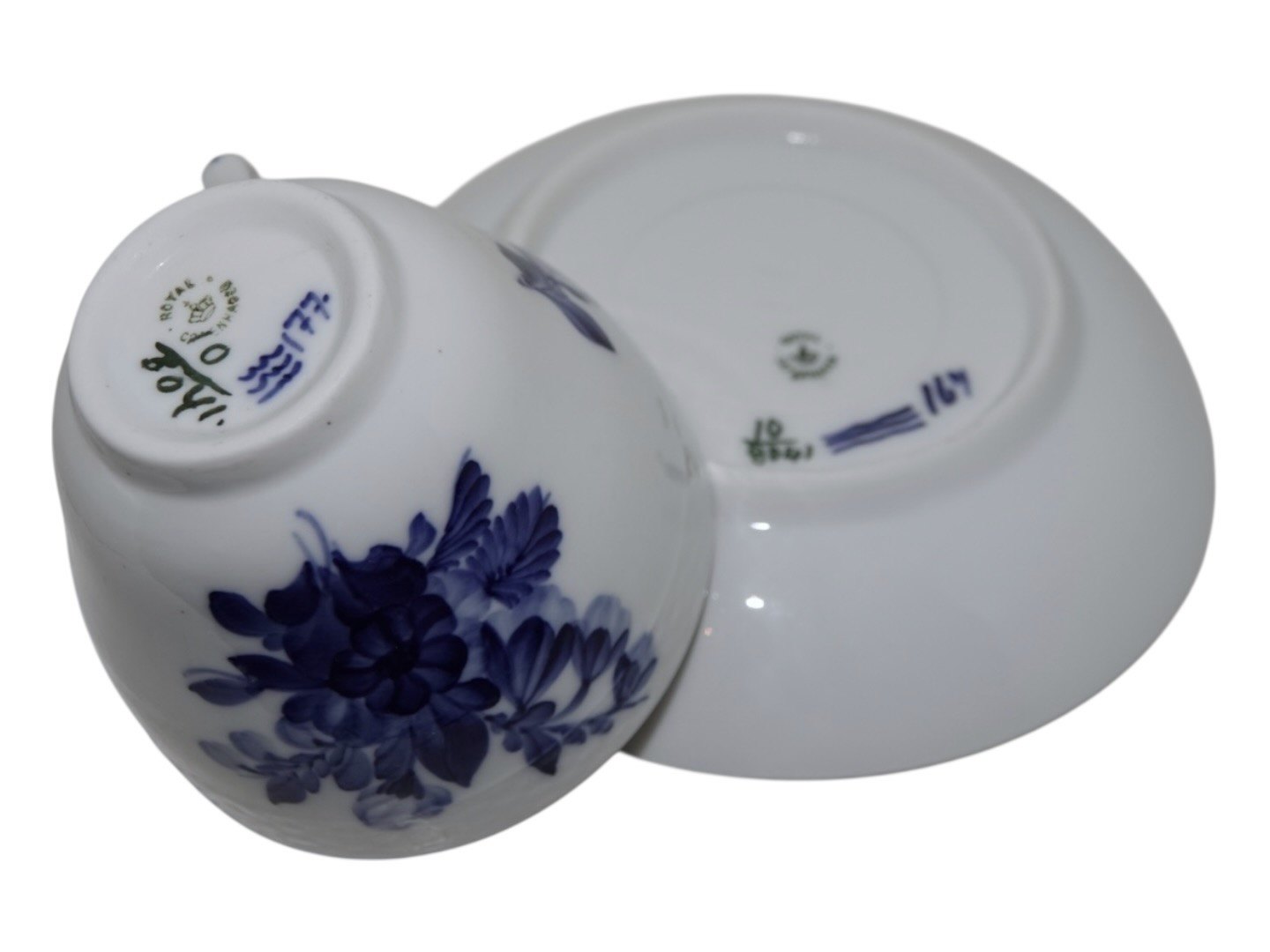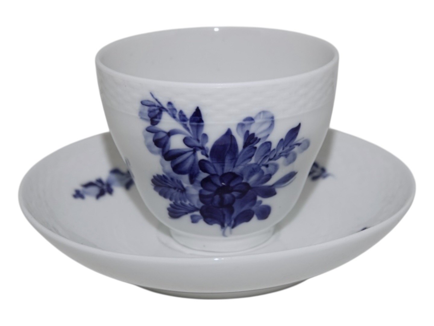 Royal Copenhagen Blå Blomst Flettet, stor kaffekop med bemaling inden i og med tilhørende underkop.