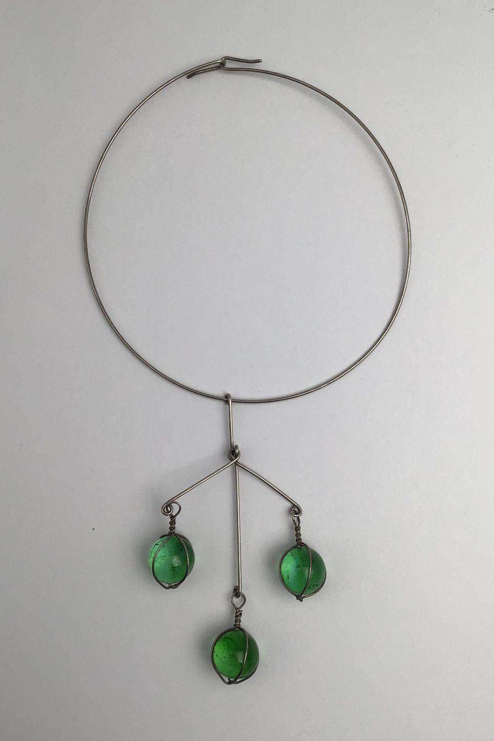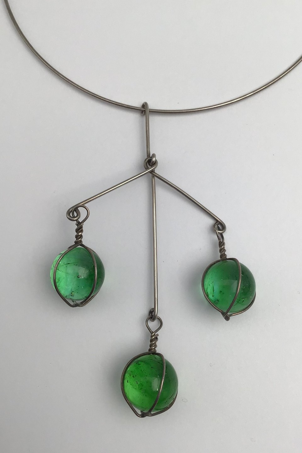 Bent Knudsen Sterling Sølv Halsring med Vedhæng (Grønne Glasperler)Måler Halsring Diam 12.5 cm (4.92 inch) Vedhæng 10 cm x 6 cm( 3.93 inch x 2.36 inch) Samlet Vægt 24.9 gr (0.87 oz)