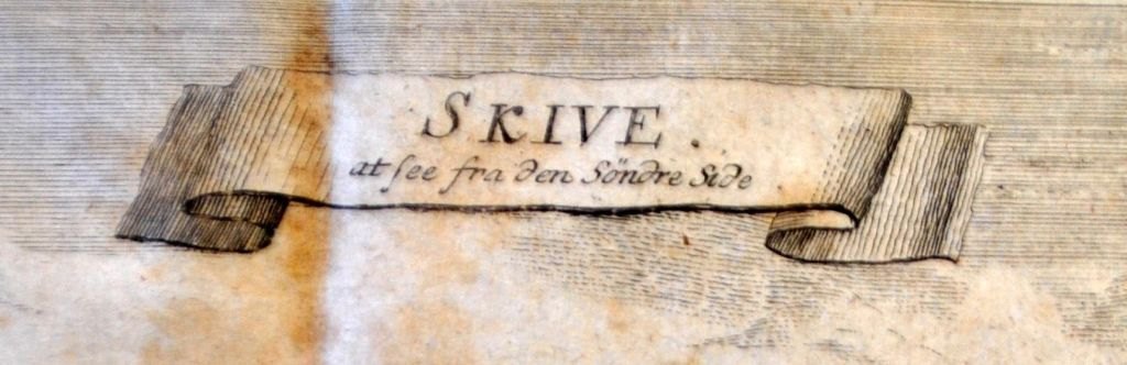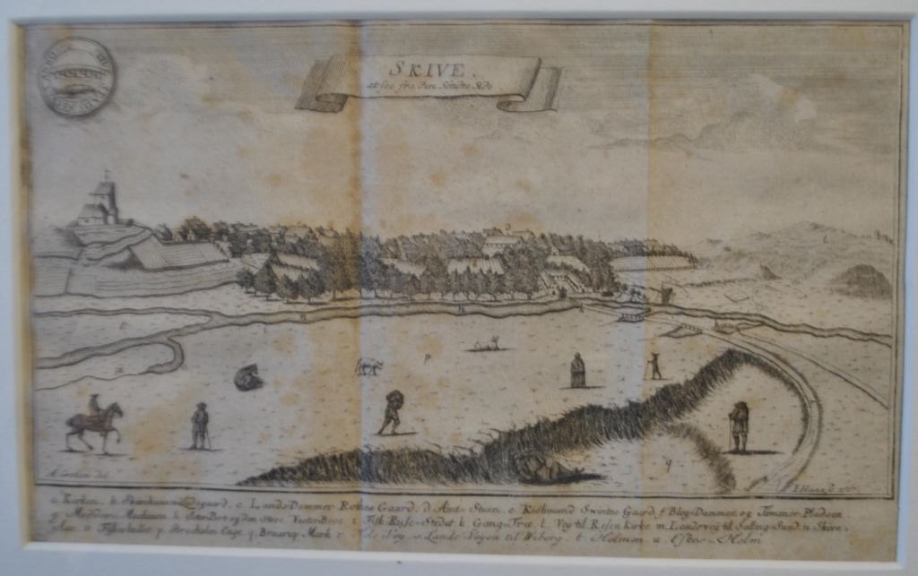 Haas, Jonas (1720 - 1775) Danmark: Skive - at see fra den syndre Side. 1767. Kobberstik. Signeret. 18 x 28 cm.Indrammet: 30 x 41 cm.