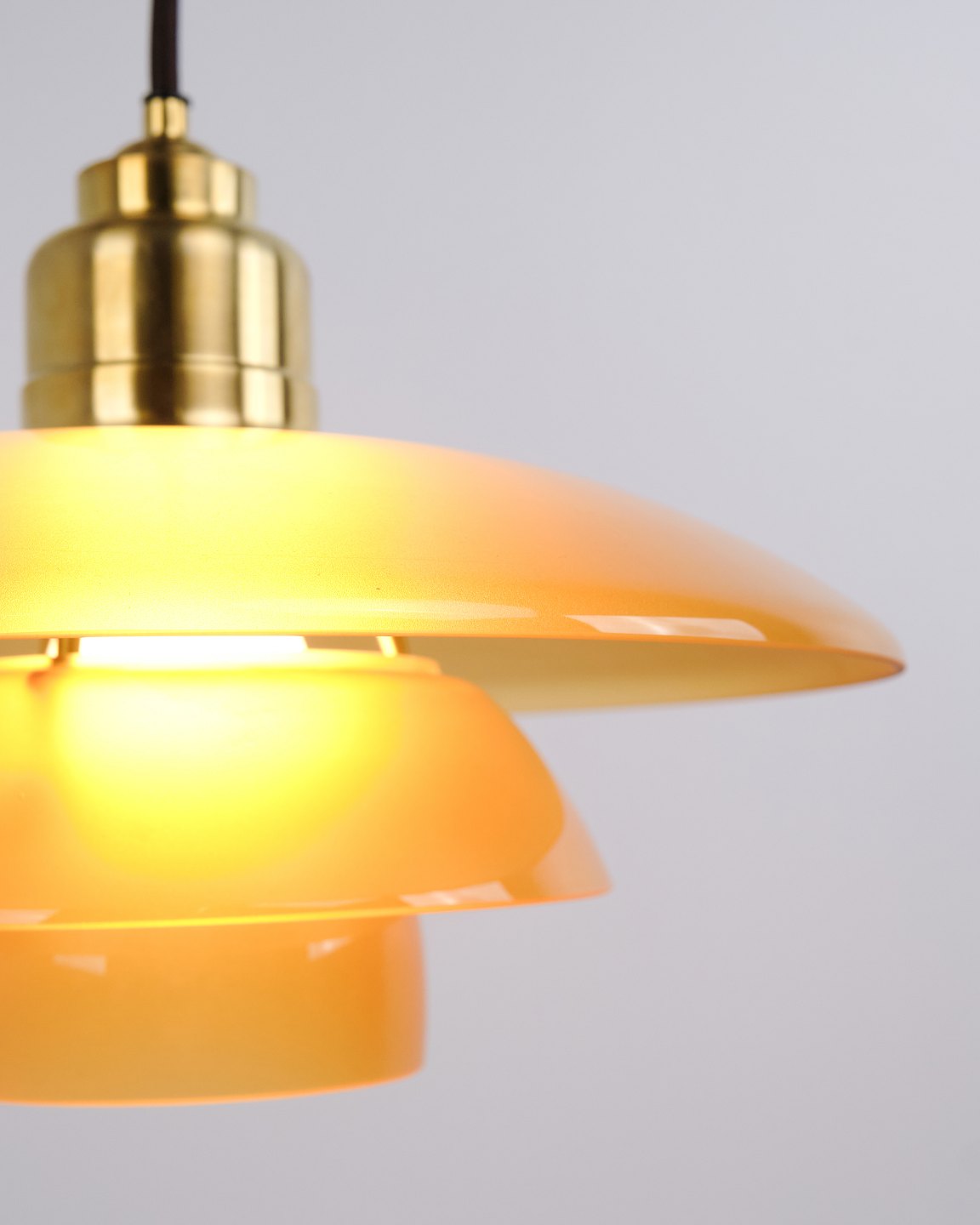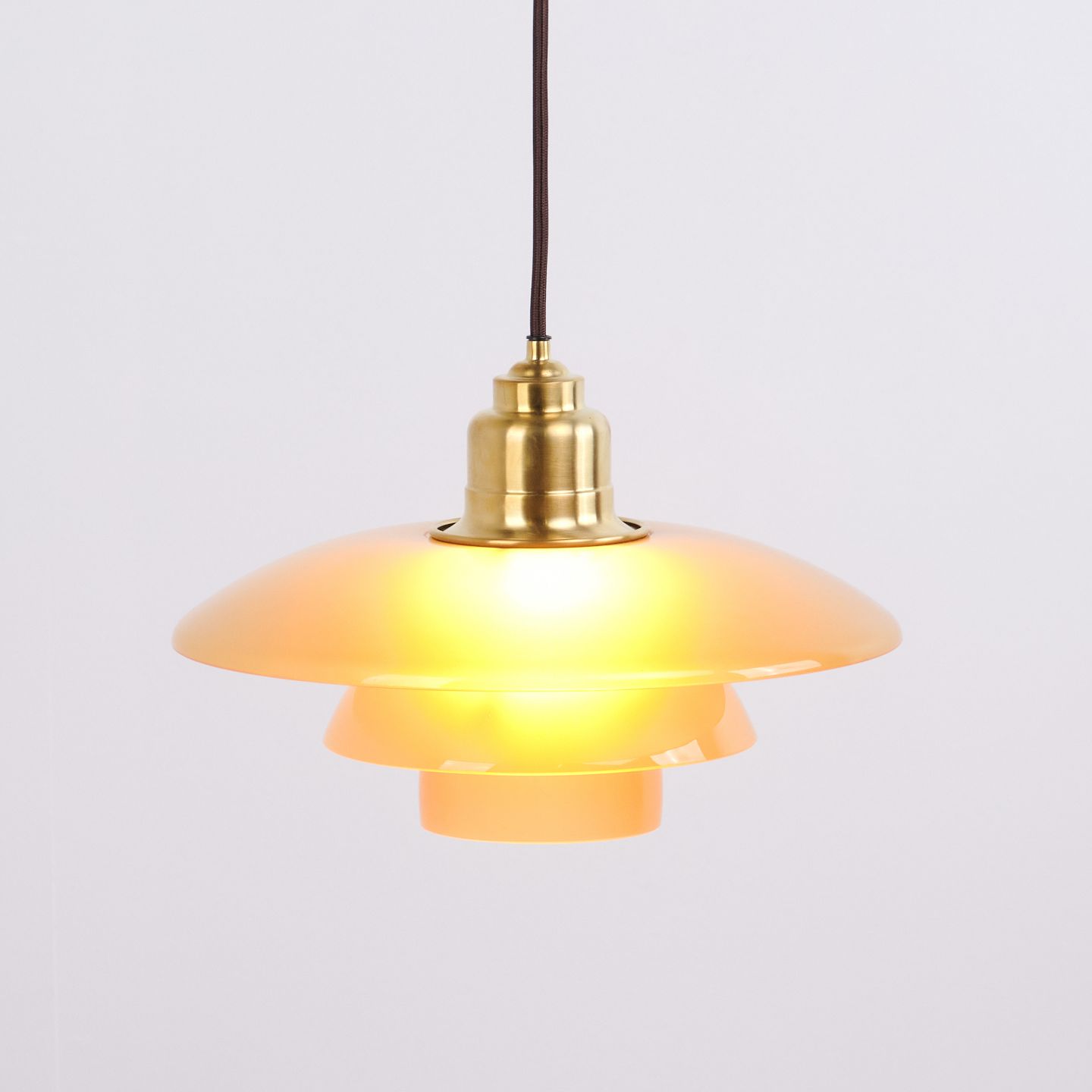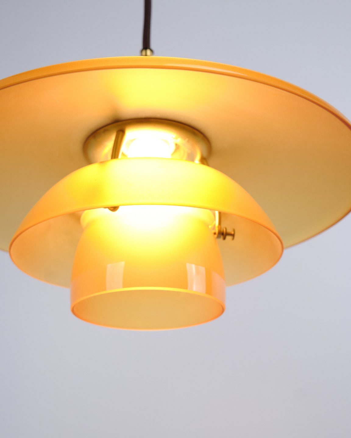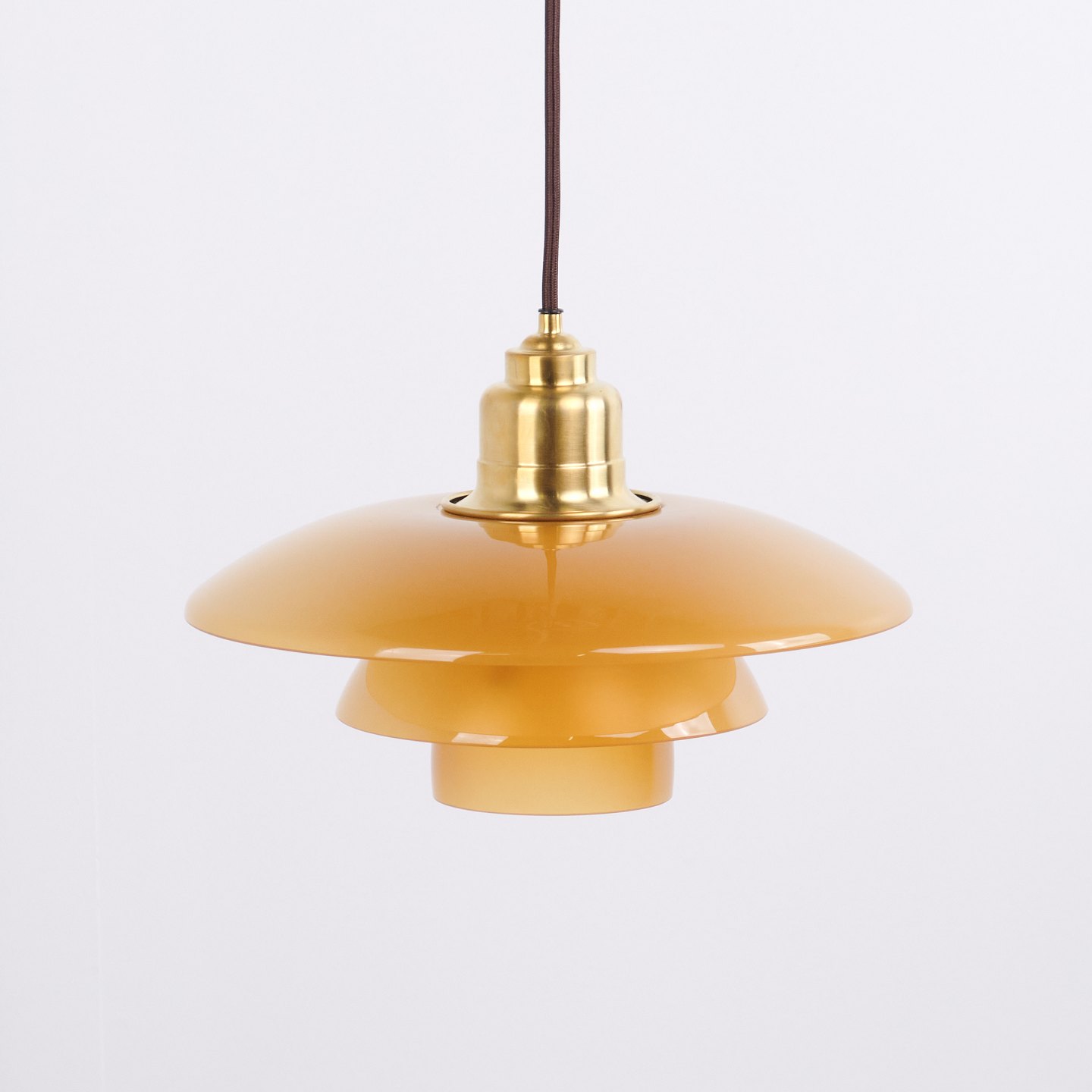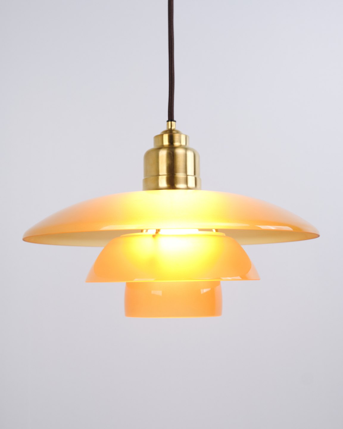 PH 3½-3 pendel designet af Poul Henningsen og udgivet som Limited Edition i 2017 af Louis Poulsen. Lampen er udført med ravfarvede glasskærme, som giver et varmt og stemningsfuldt lys. Modellen blev kun produceret og solgt i en kort periode, hvilket gør den særligt eftertragtet.— Oprindelse: Danmark