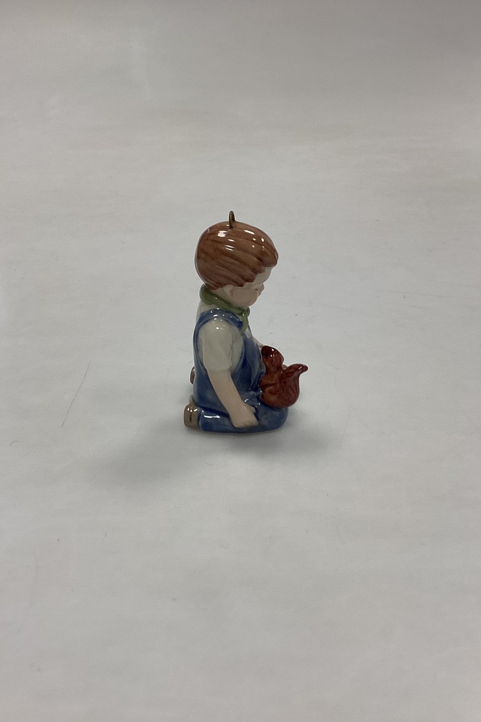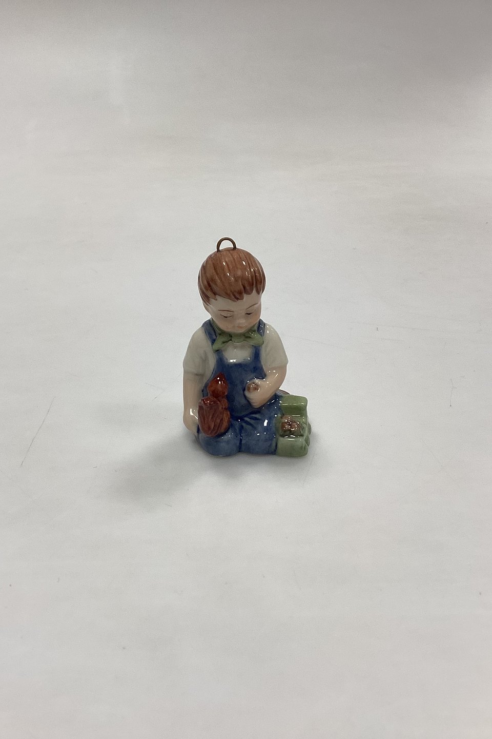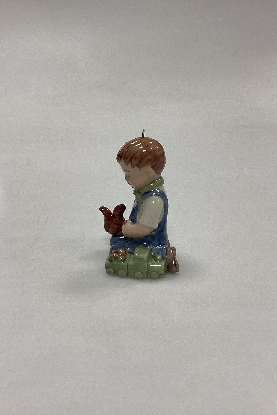 Bing og Grøndahl Collections 2001 Juleornament - Christian No. 743. Designet af Sven Vestergaard. Dreng med tog og egern. Figur til ophæng.Måler 6 cm / 2,36 in.