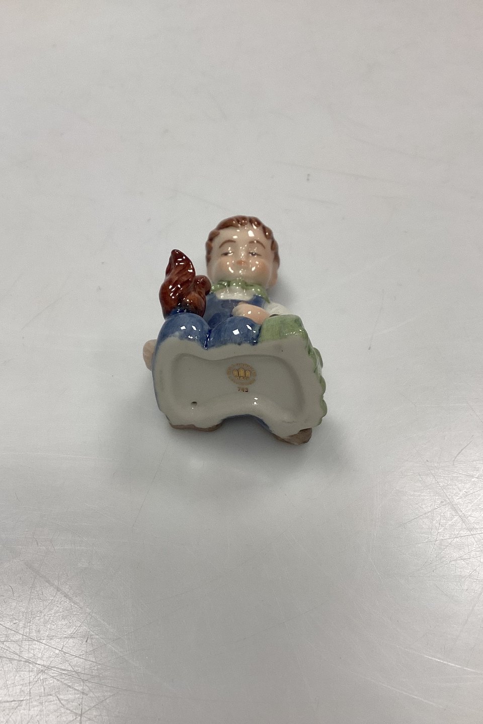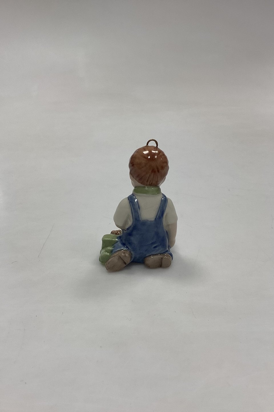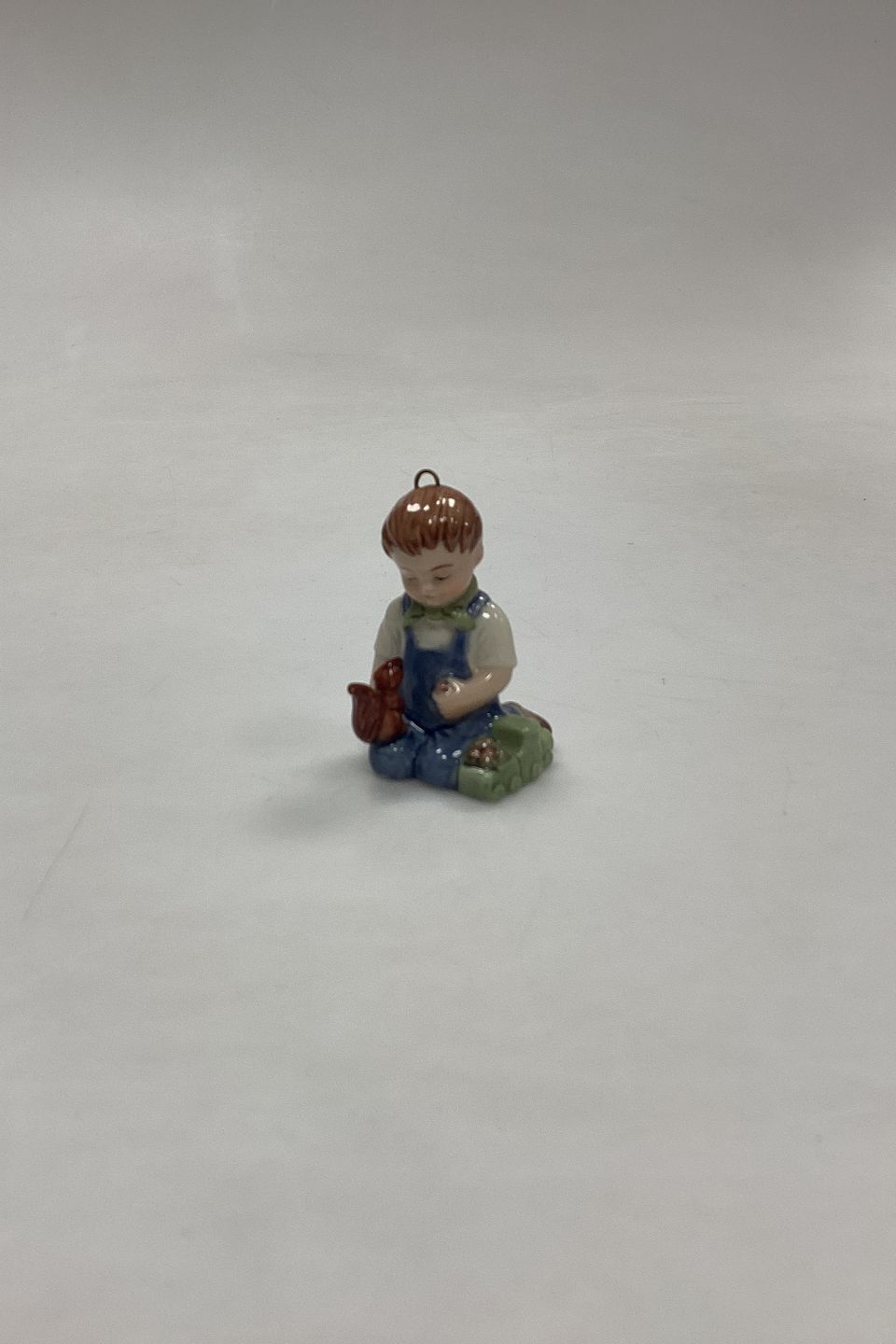 Bing og Grøndahl Collections 2001 Juleornament - Christian No. 743. Designet af Sven Vestergaard. Dreng med tog og egern. Figur til ophæng.Måler 6 cm / 2,36 in.