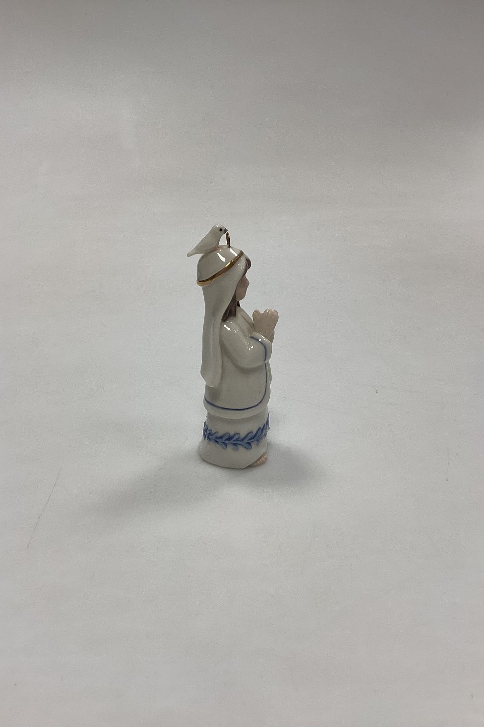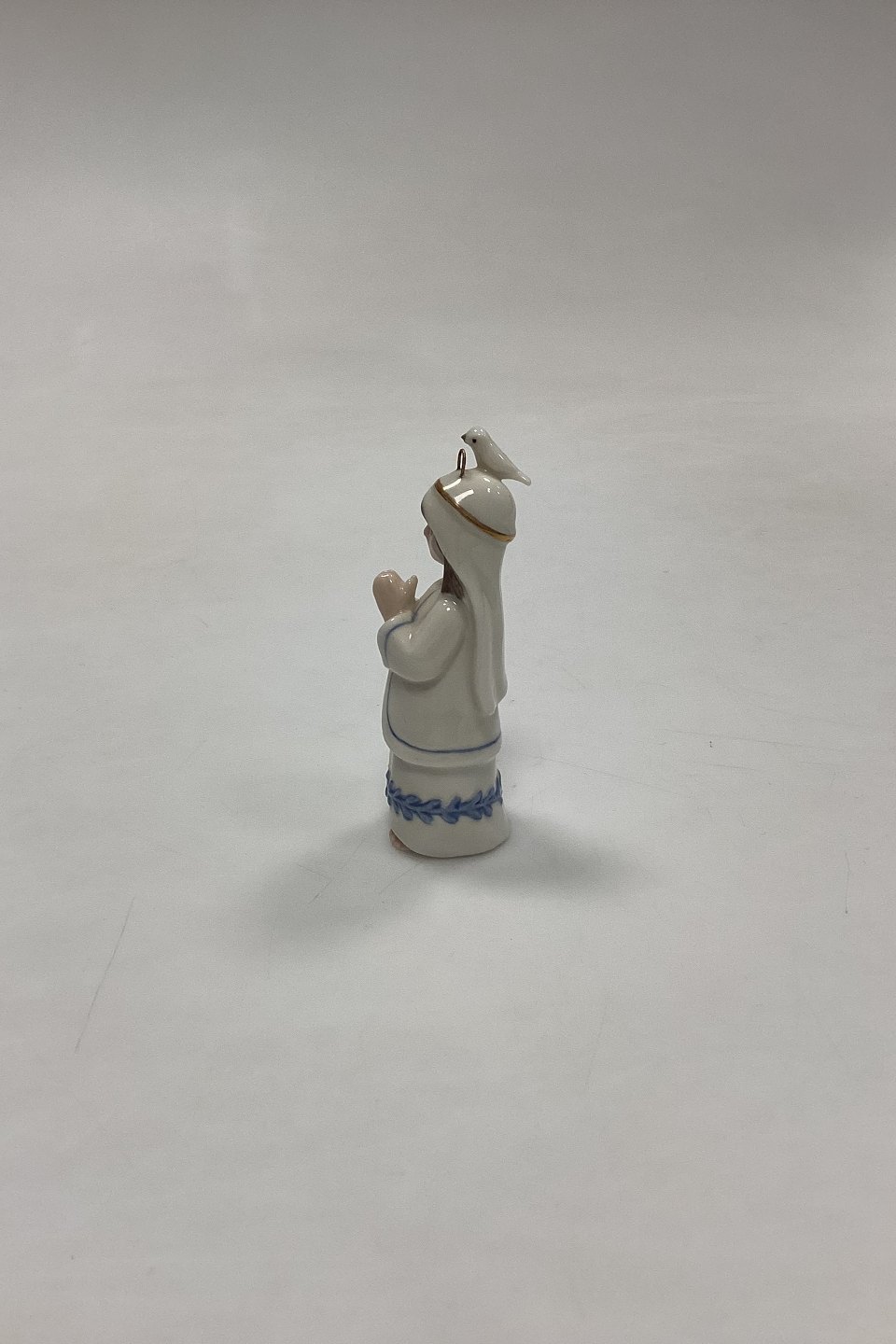 Royal Copenhagen Børnenes Jul 2007 Juleornament - Sara No. 385. Designet af Ingrid Jensen. Pige med fugl. Figur til ophæng.Måler 8 cm / 3,15 in.