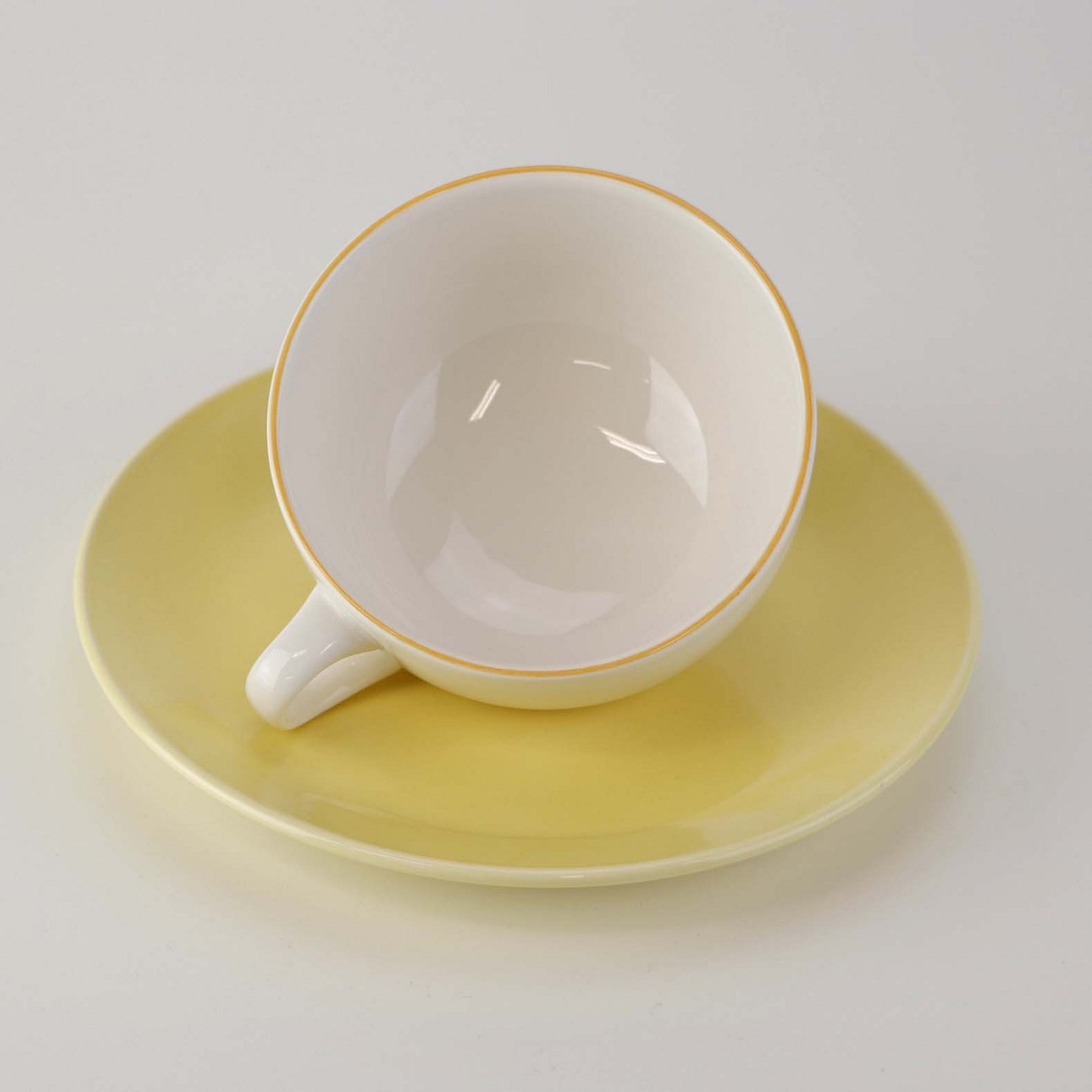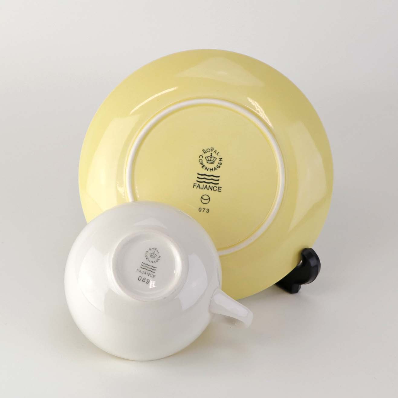 Lille morgenkop i fajance med gul underkop fra stellet 4 All seasons nr. 069 og 073Produceret af Royal Copenhagen fajance