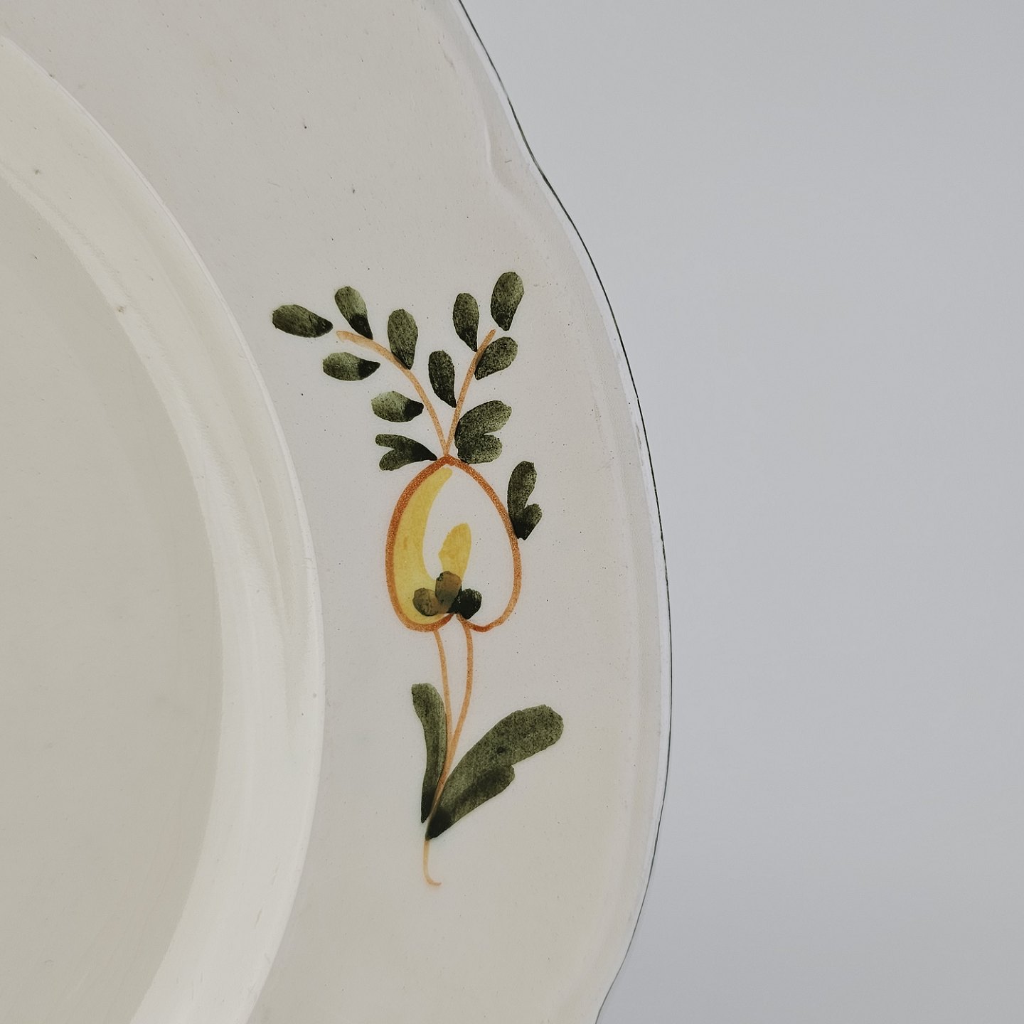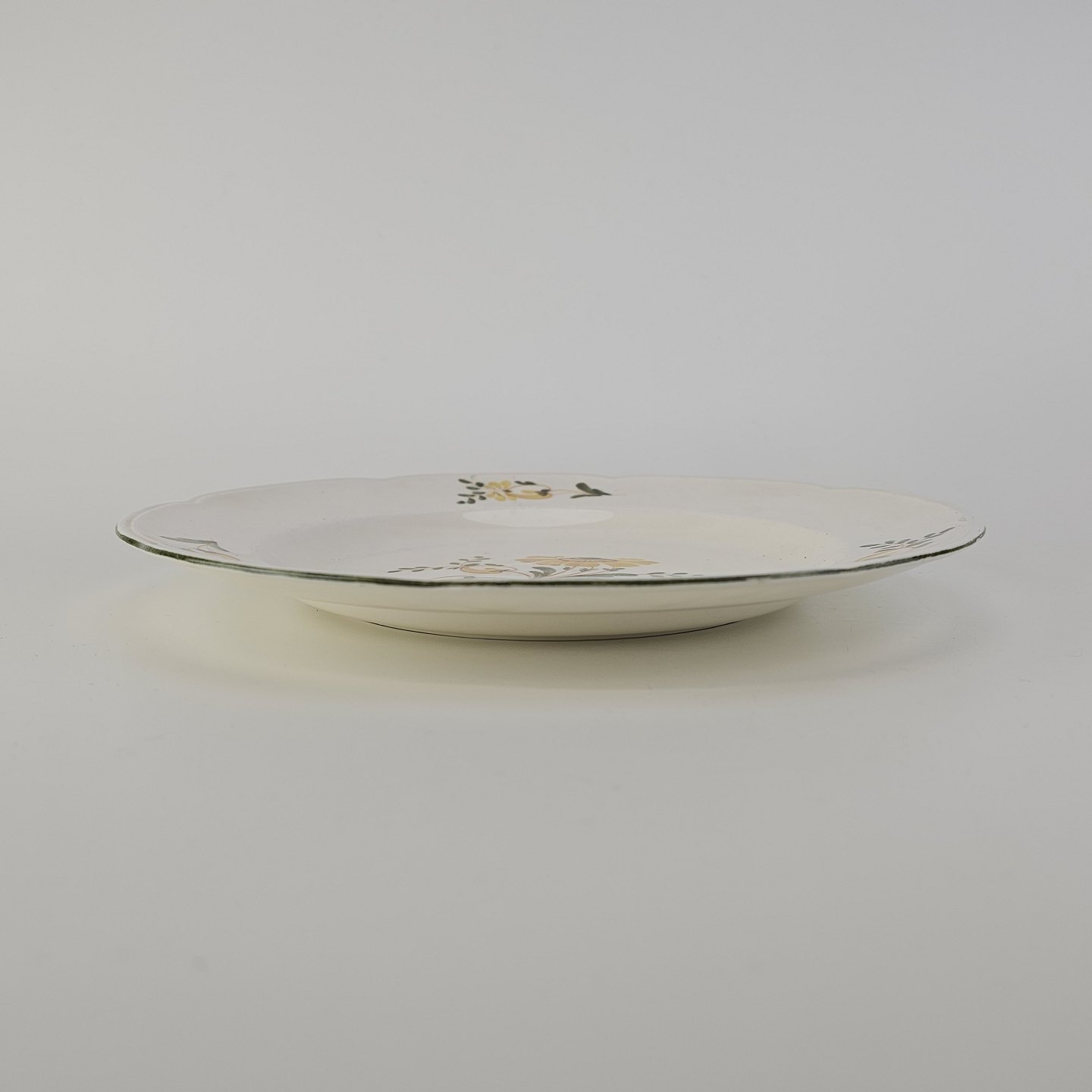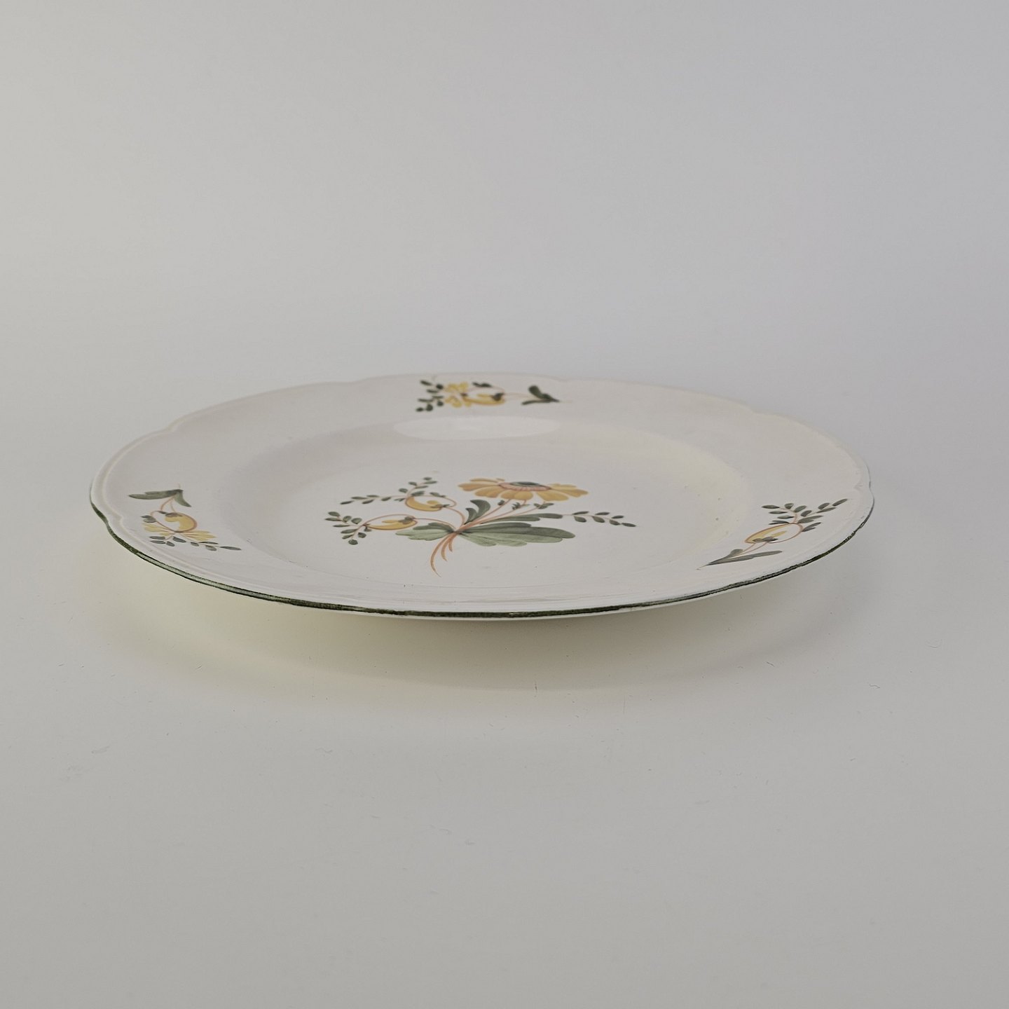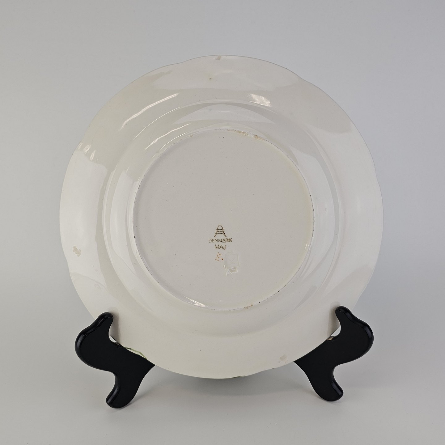 Flad tallerken i fajance fra stellet Maj fremstillet i perioden 1941-1966.Formgiver Nils Thorsson