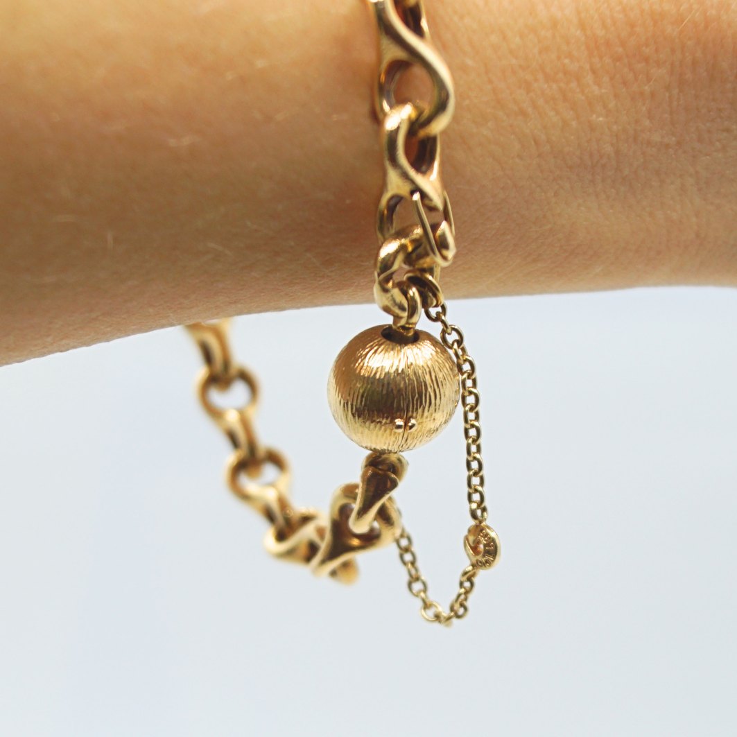 Ole Lynggaard; Otte-tals armbånd i 14 kt. guld med kuglelås