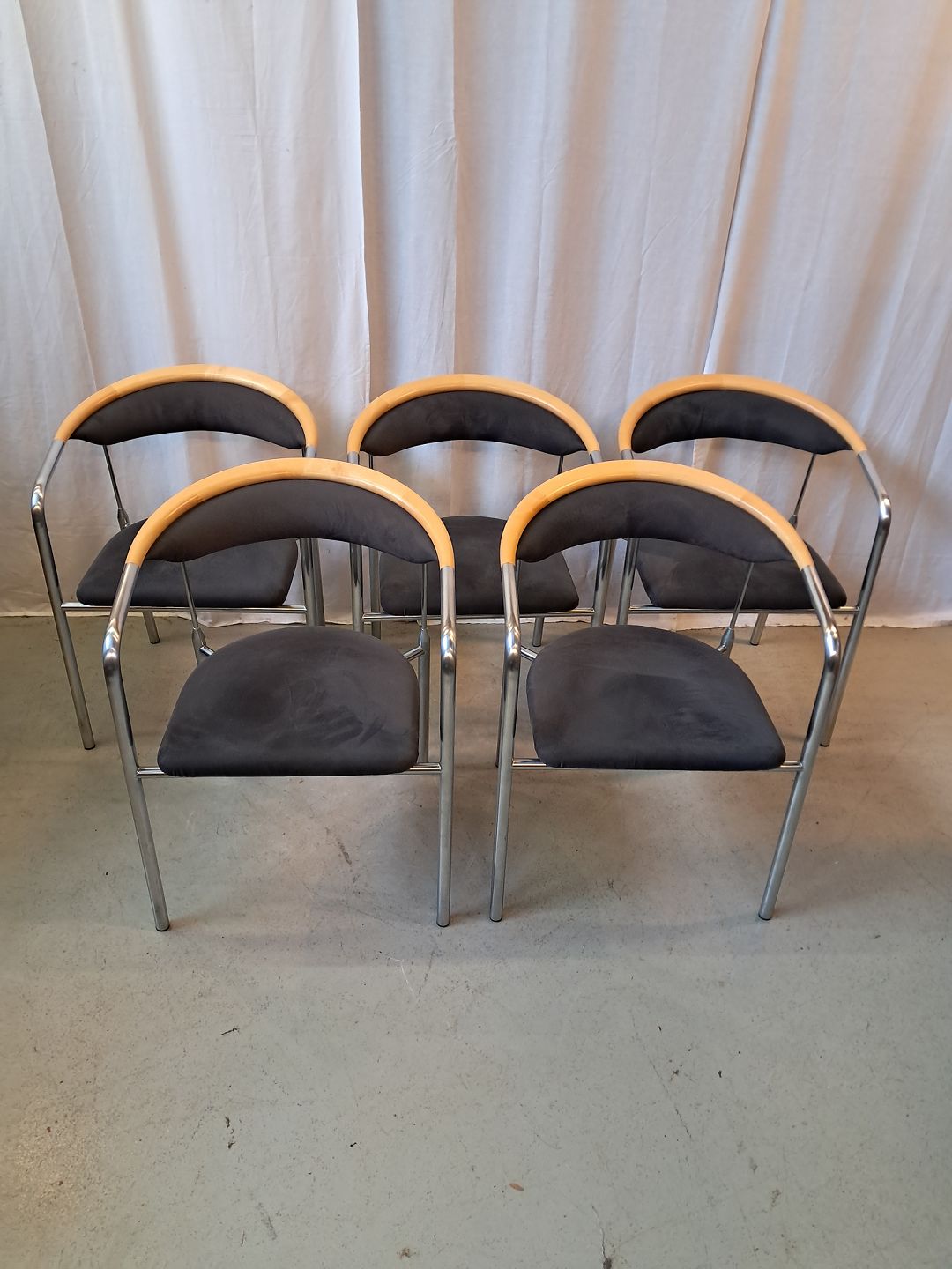 5 Chairman stole af Henrik Tengler i metal med alcantarabetræk, fra 2010erne.De har brugsspor.