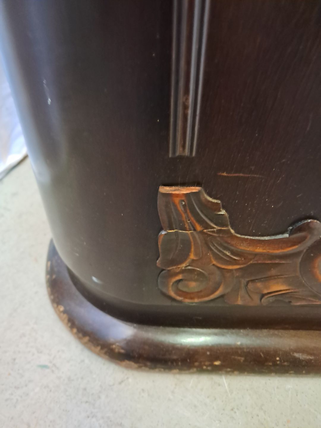 Reol i fineret birketræ, fra 1930erne.Den har en finer defekt og 2 defekter på prydlisterne. (se foto)
