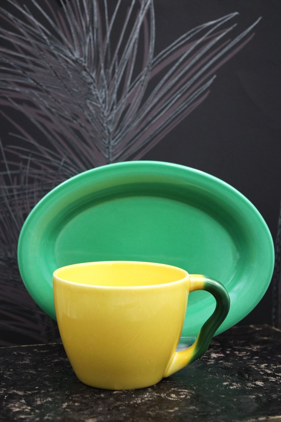 og undertallerken i grøn glasur.