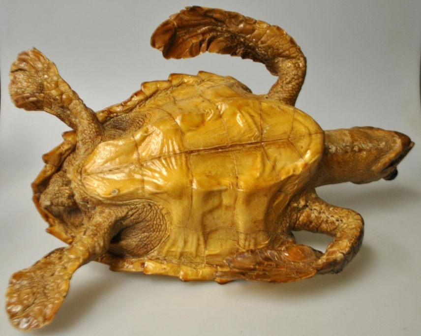 Udstoppet skildpadde, 19./20. årh. L.: 34 cm. B.: 19 cm.Perfekt stand!