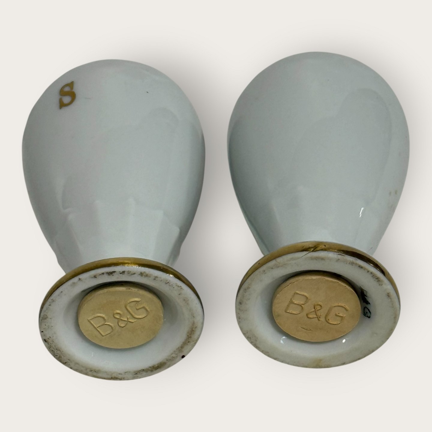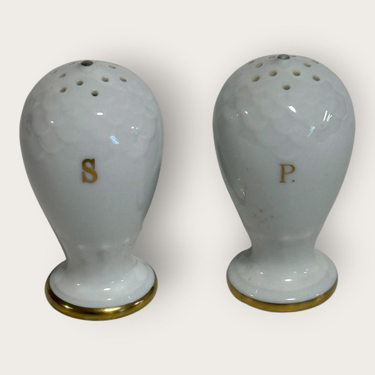 Bing & Grøndahl, Aakjær, Hvid porcelæn med guldkant, salt og pebersæt 7cm høj, 1.sortering *Pæn stand*Lager: 2