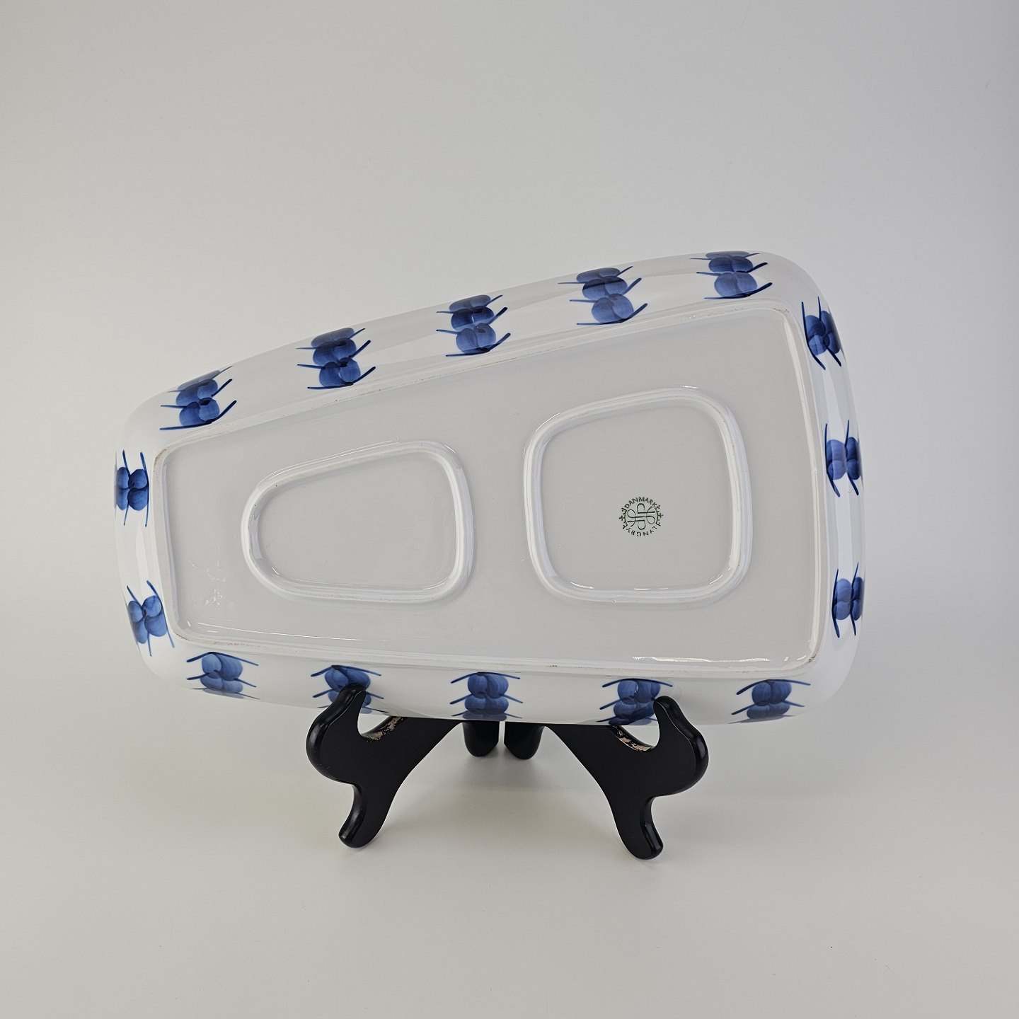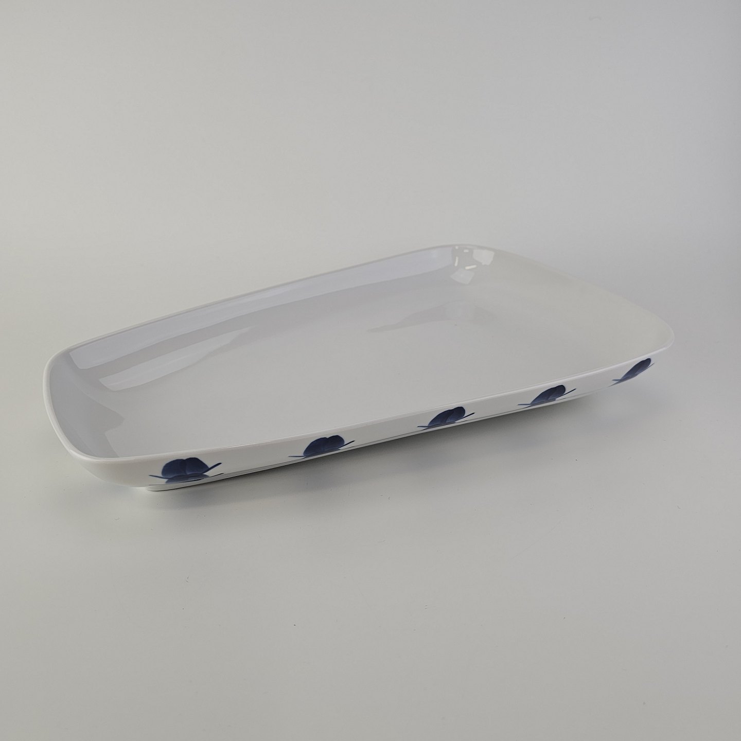 Asymmetrisk aflangt fad i porcelæn fra Stellet Danild 30, også kaldet Blomsterknop