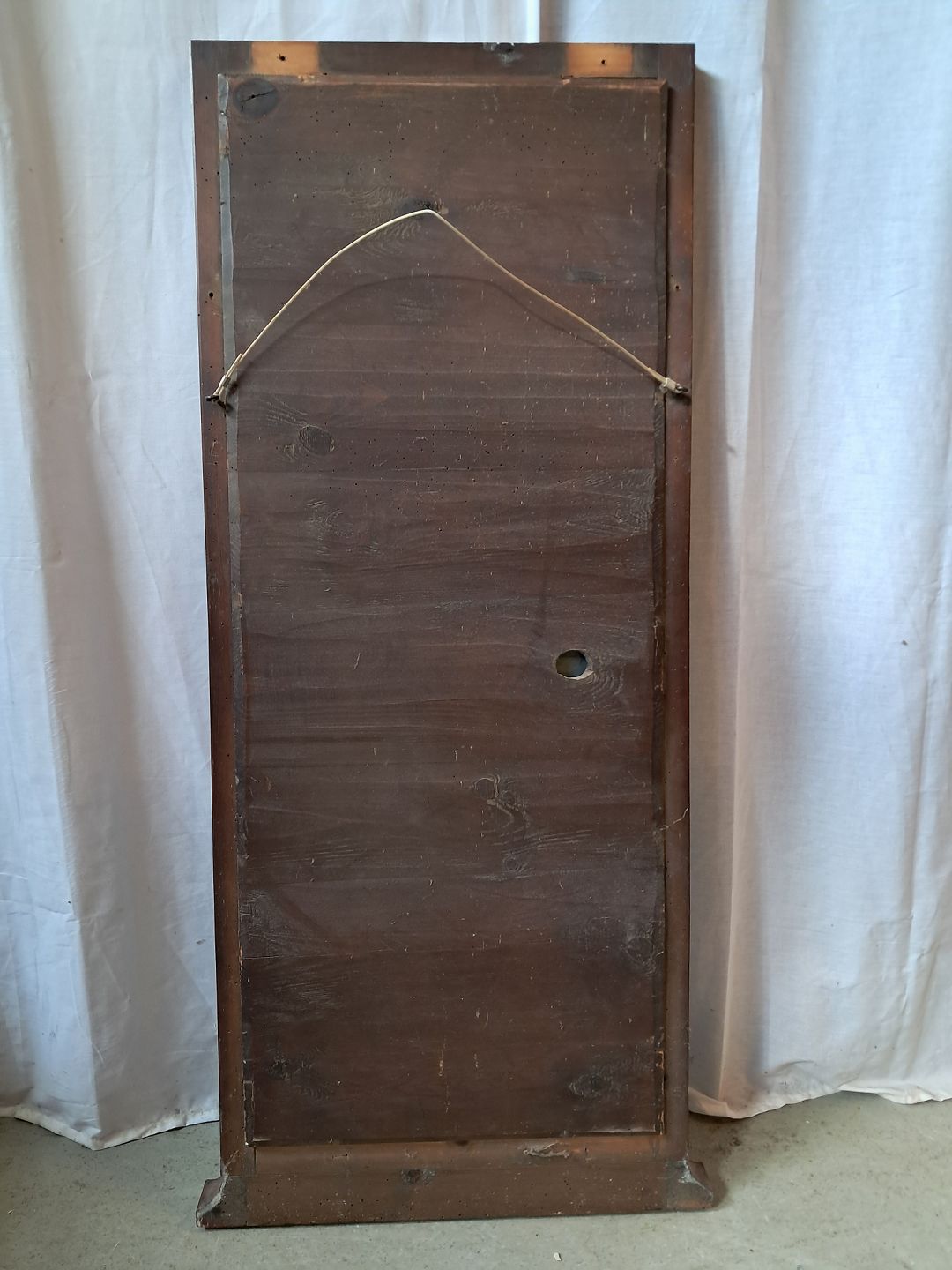 Spejl i fineret mahogni, fra 1900erne.Det har brugsspor.