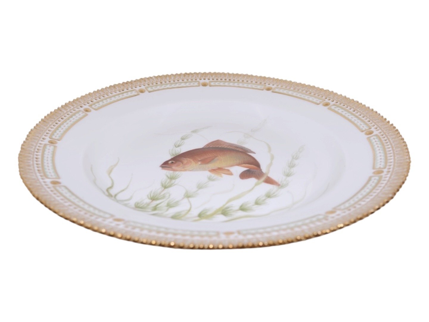 Royal Copenhagen Flora Danica, middagstallerken dekoreret med fisk.Dekorationsnummer 19/3549.