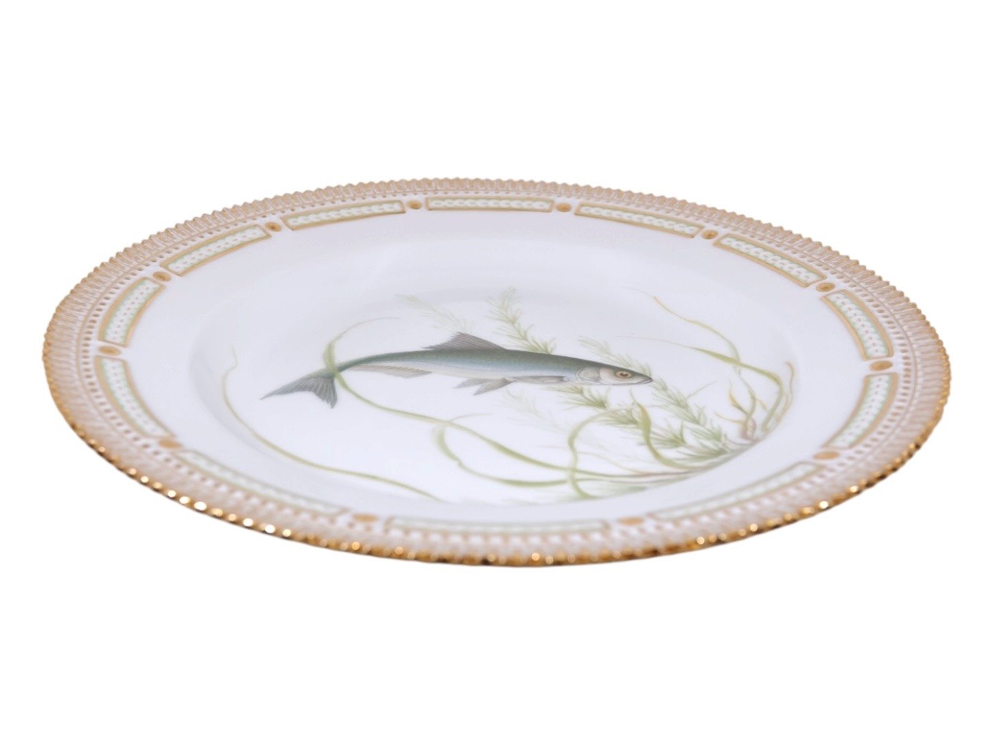Royal Copenhagen Flora Danica, middagstallerken dekoreret med fisk.