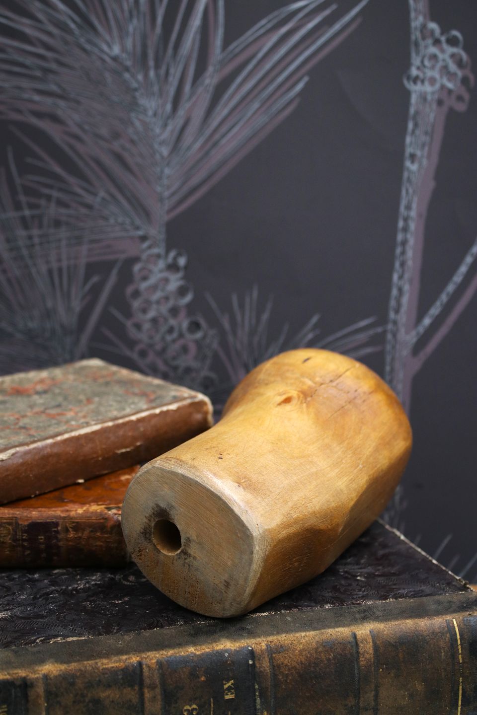 Dekorativt , antikt mini hatte hoved i udskåret træ med en rigtig fin patina. Højde: 17,5cm.Emne nummer: Hatte hoved i træ