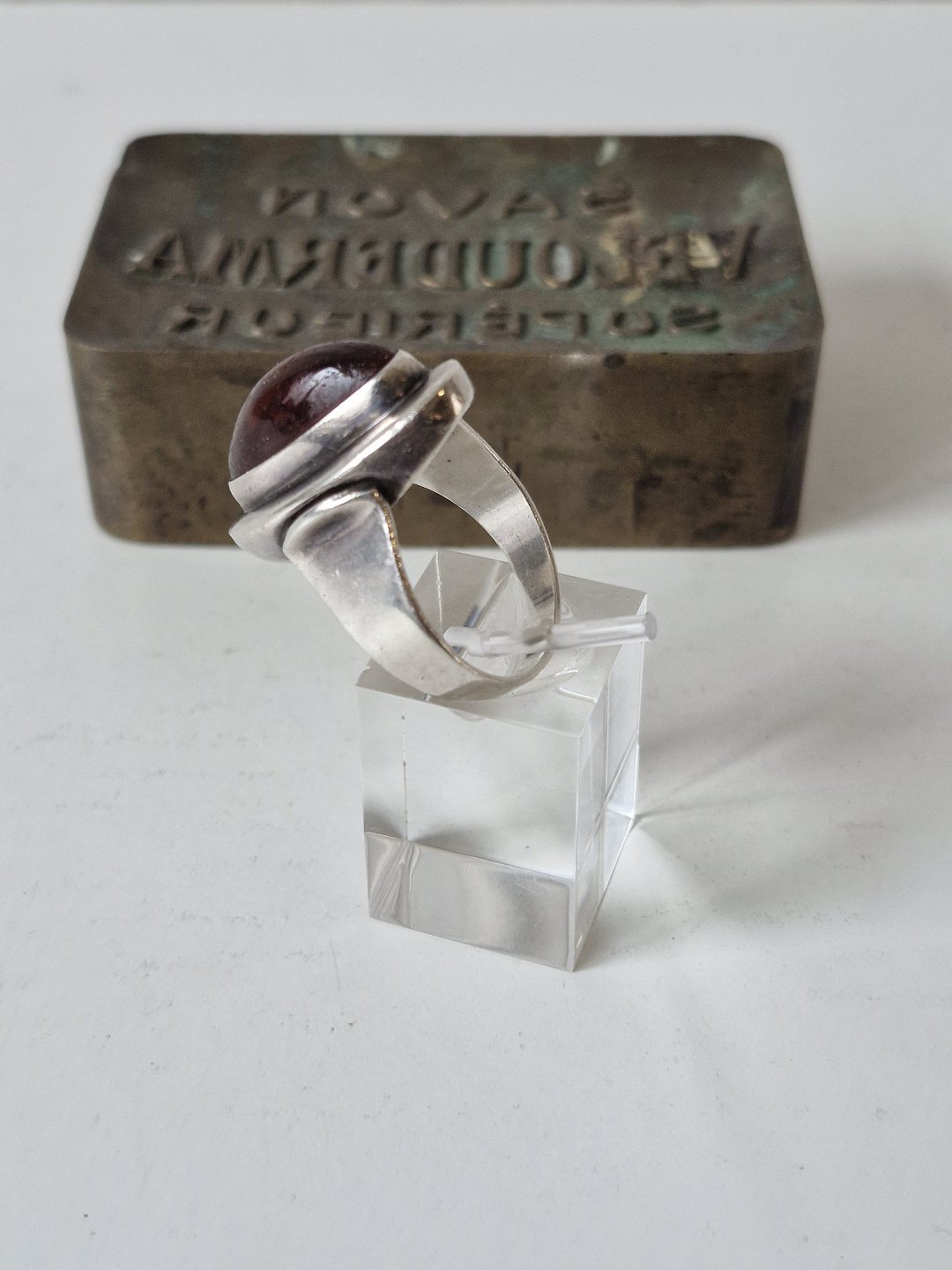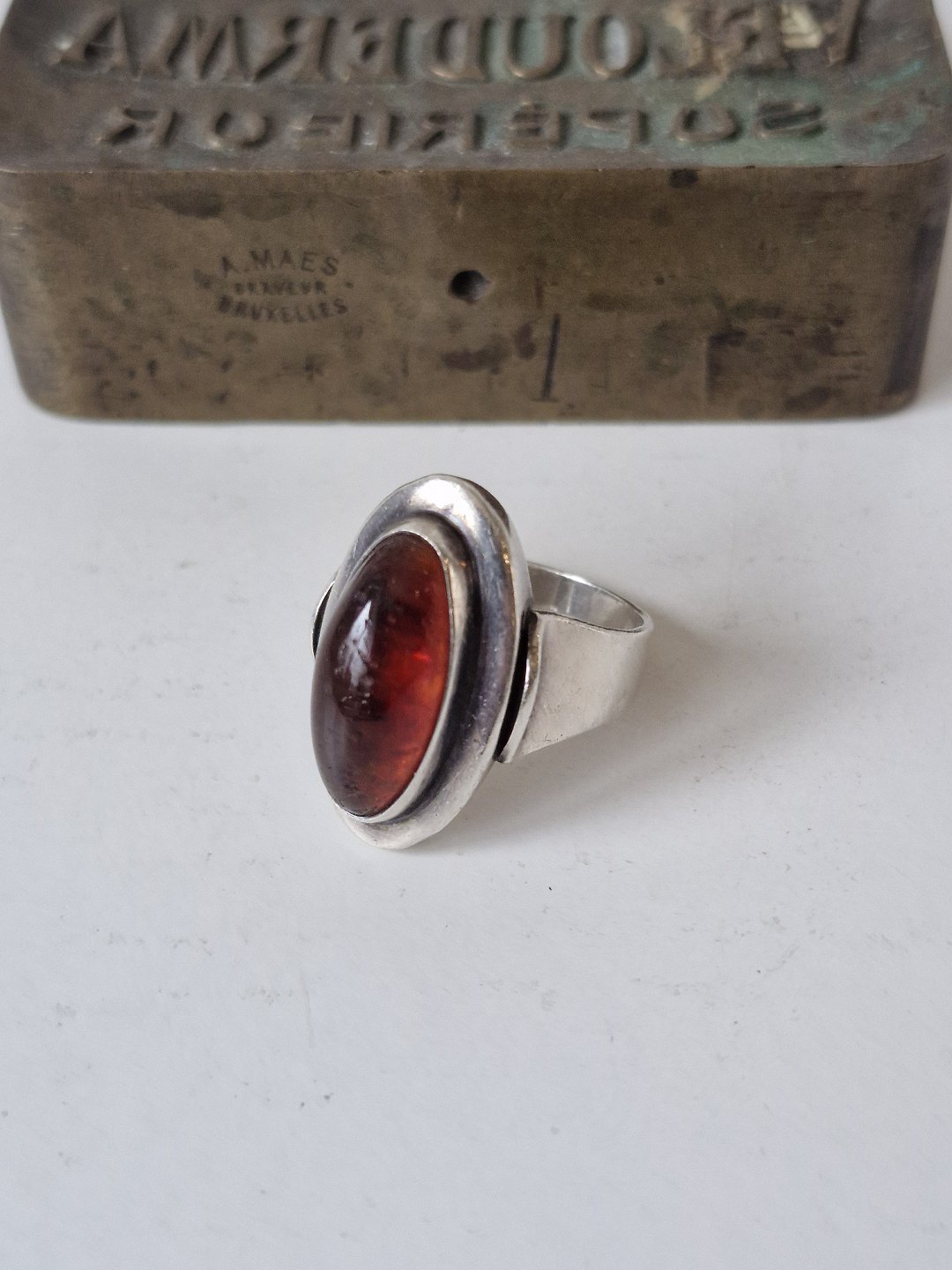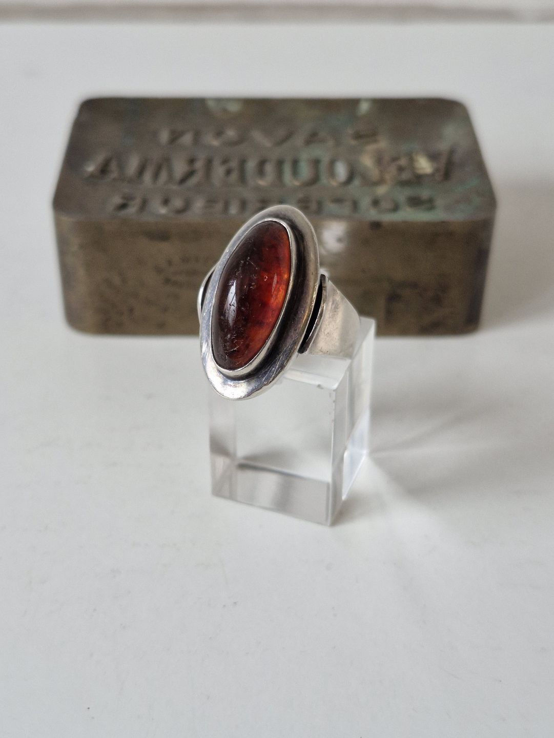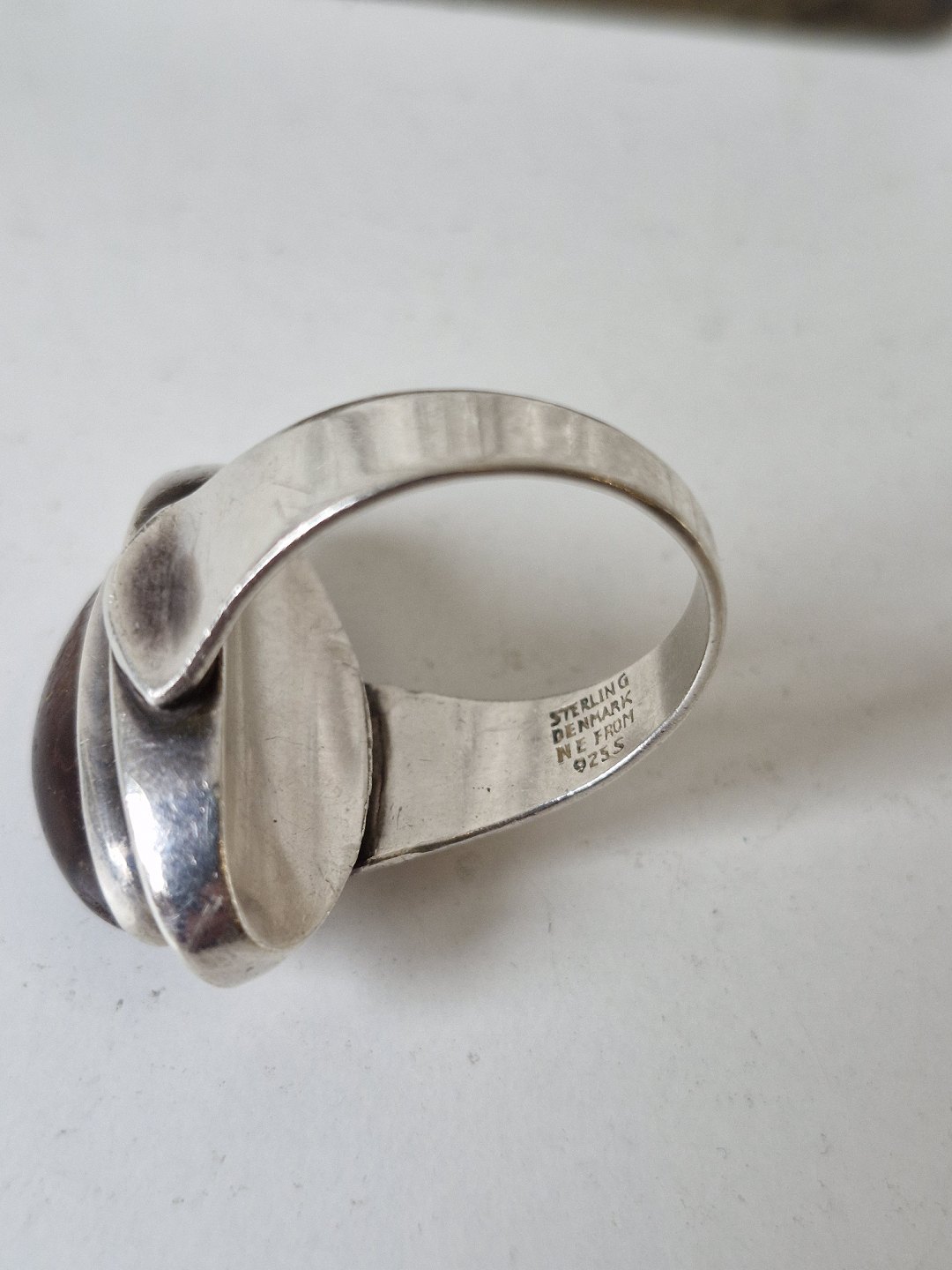 N.E.From vintage ring i sterlingsølv med oval ravperleStemplet: N.E.From - Sterling - Denmark