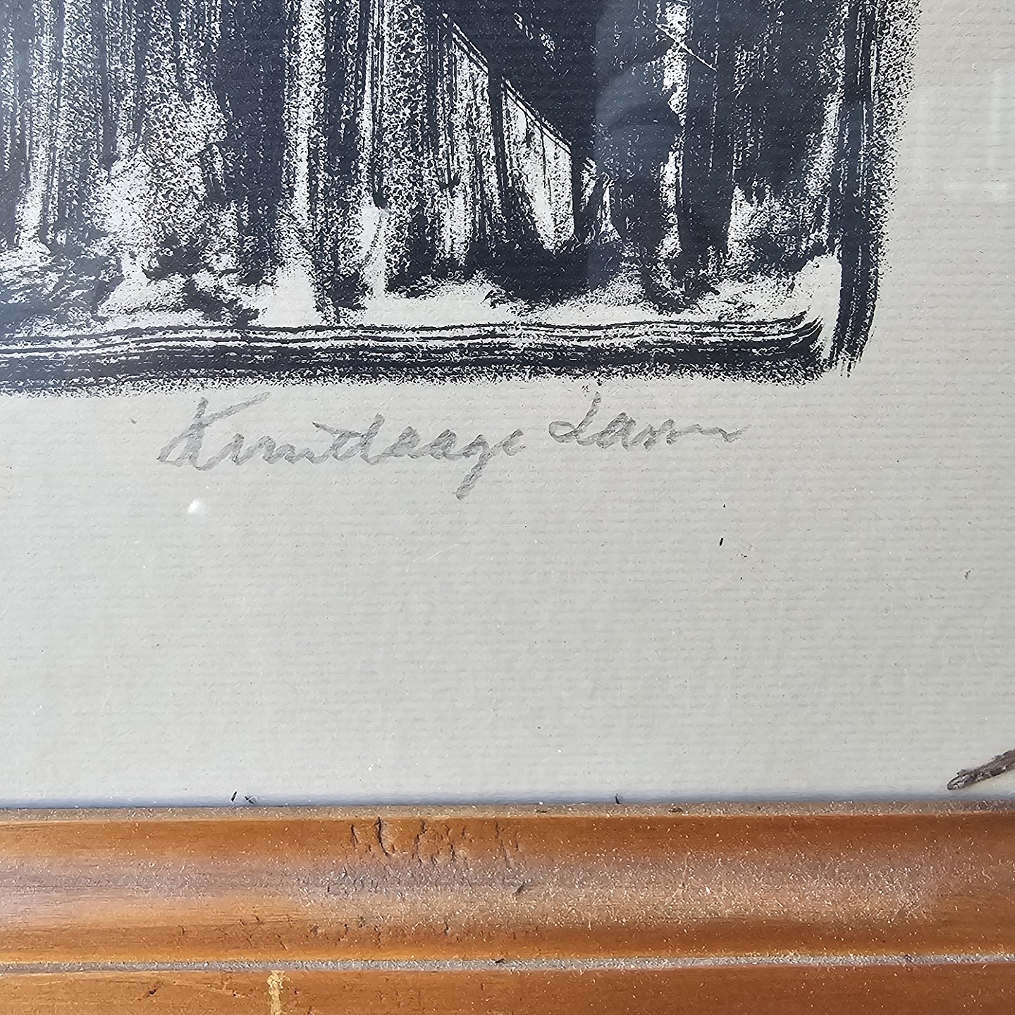 Tryk på papir monteret i træramme, portræt af en mand med en pibeKunstner Svend Aage Larsen (1900-1979)
