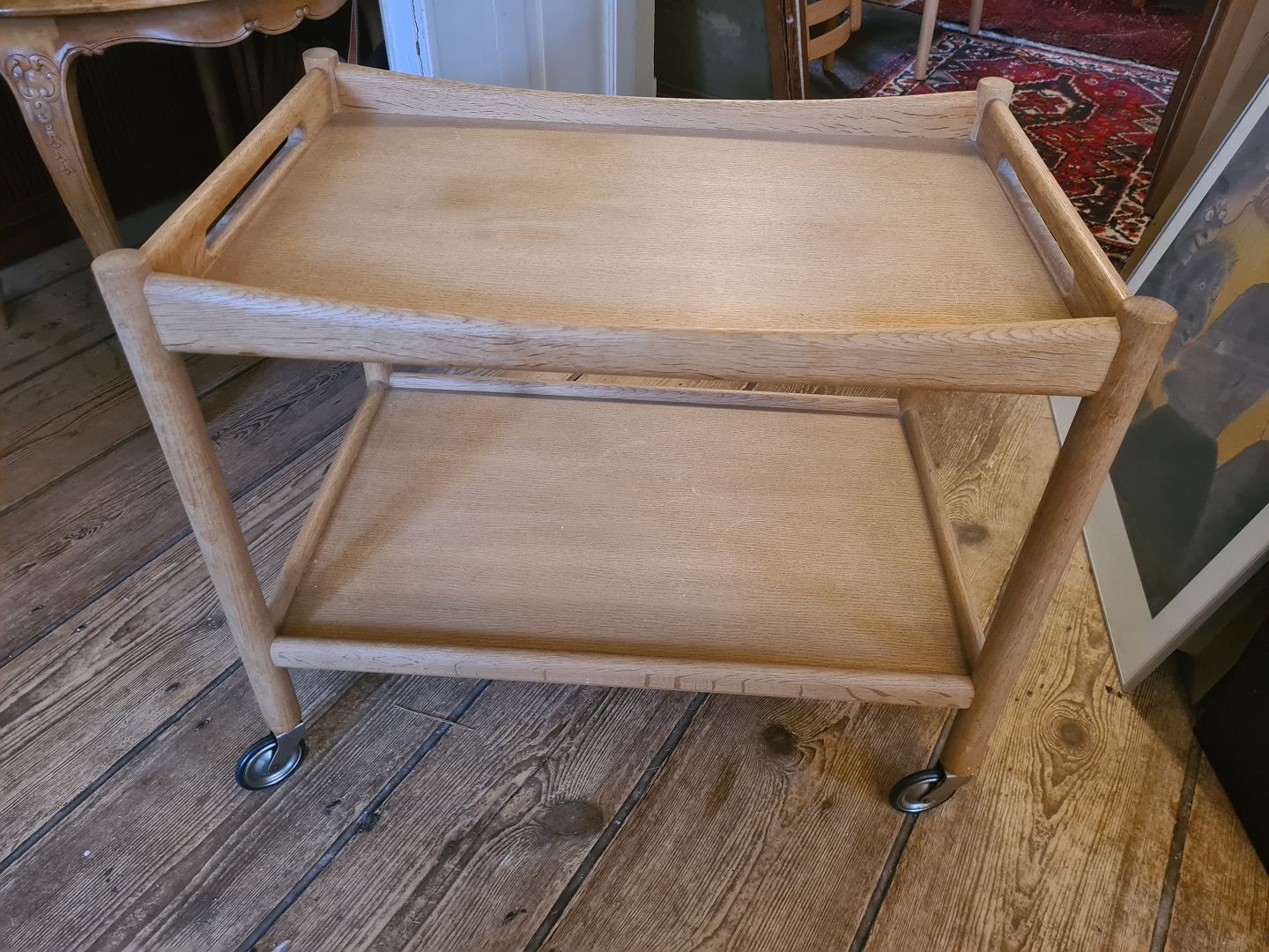 Rullebord i eg designet af Hans J. Wegner og fremstillet hos Andreas Tuck. Fremstår pænt og velholdt uden de store brugsspor.Højde 60 cm. Længde 72 cm. Bredde 47 cm.