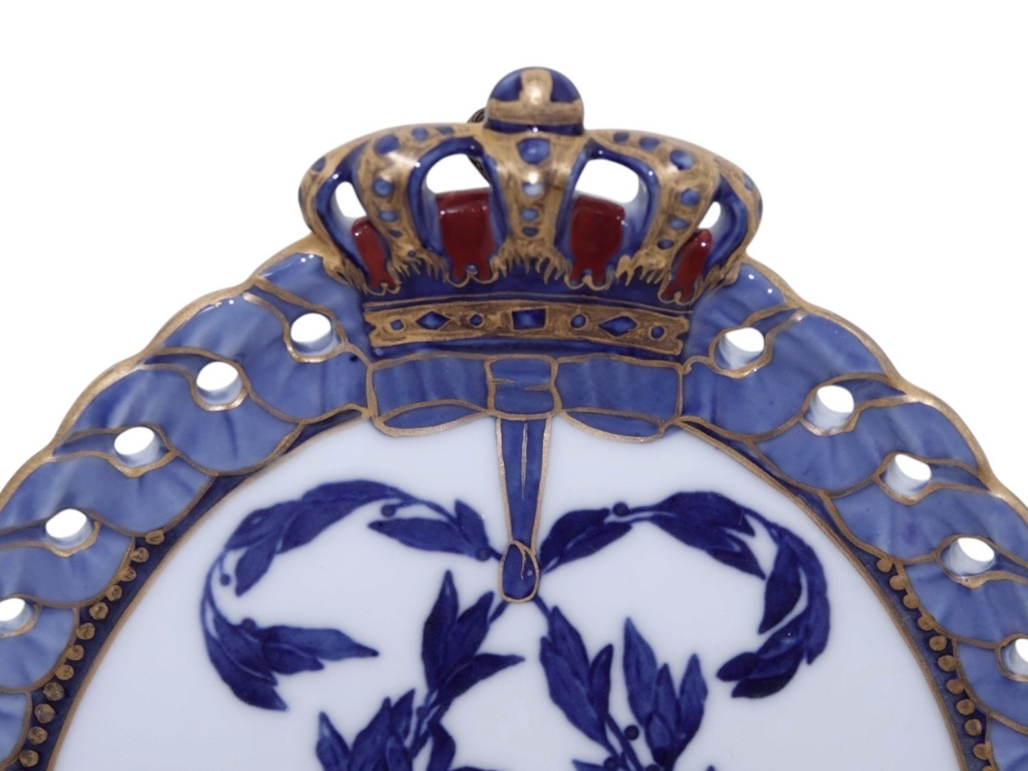 Royal Copenhagen Mindeplatte fra 1897 med guldkant.Dronning Louises 80 års fødselsdag, 7. september 1817-1897.