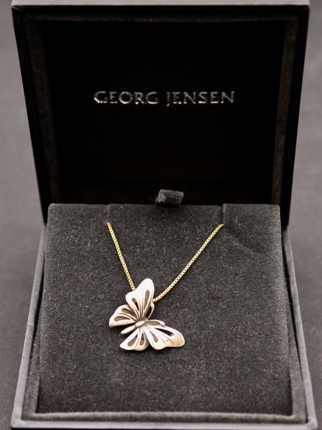 Sommerfugle vedhæng 563 2,2 x 1,5 cm designet af Regitze Overgaard for Georg Jensen stemplet GJ 925s (sterling sølv) 563 model. Nr. 431650 Udstiller