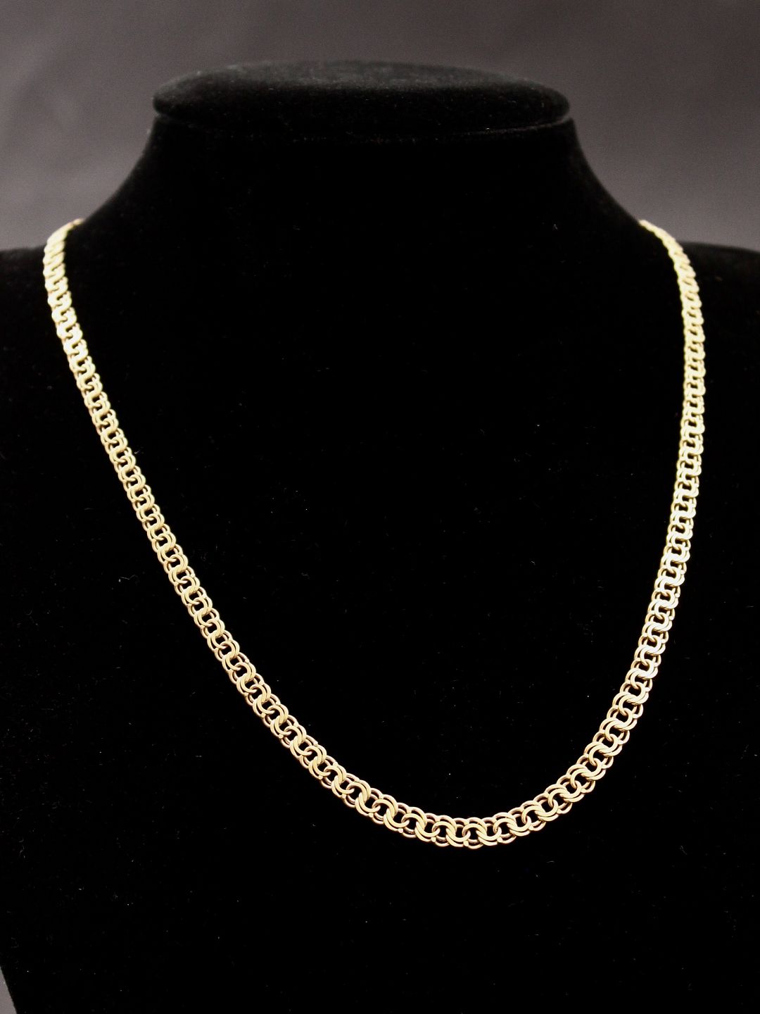 8 karat guld bismarck halskæde 42,5 cm. B. 0,35-0,5 cm. vægt 8 gram fra guldsmed V Petersen København emne nr. 635360 Udstiller