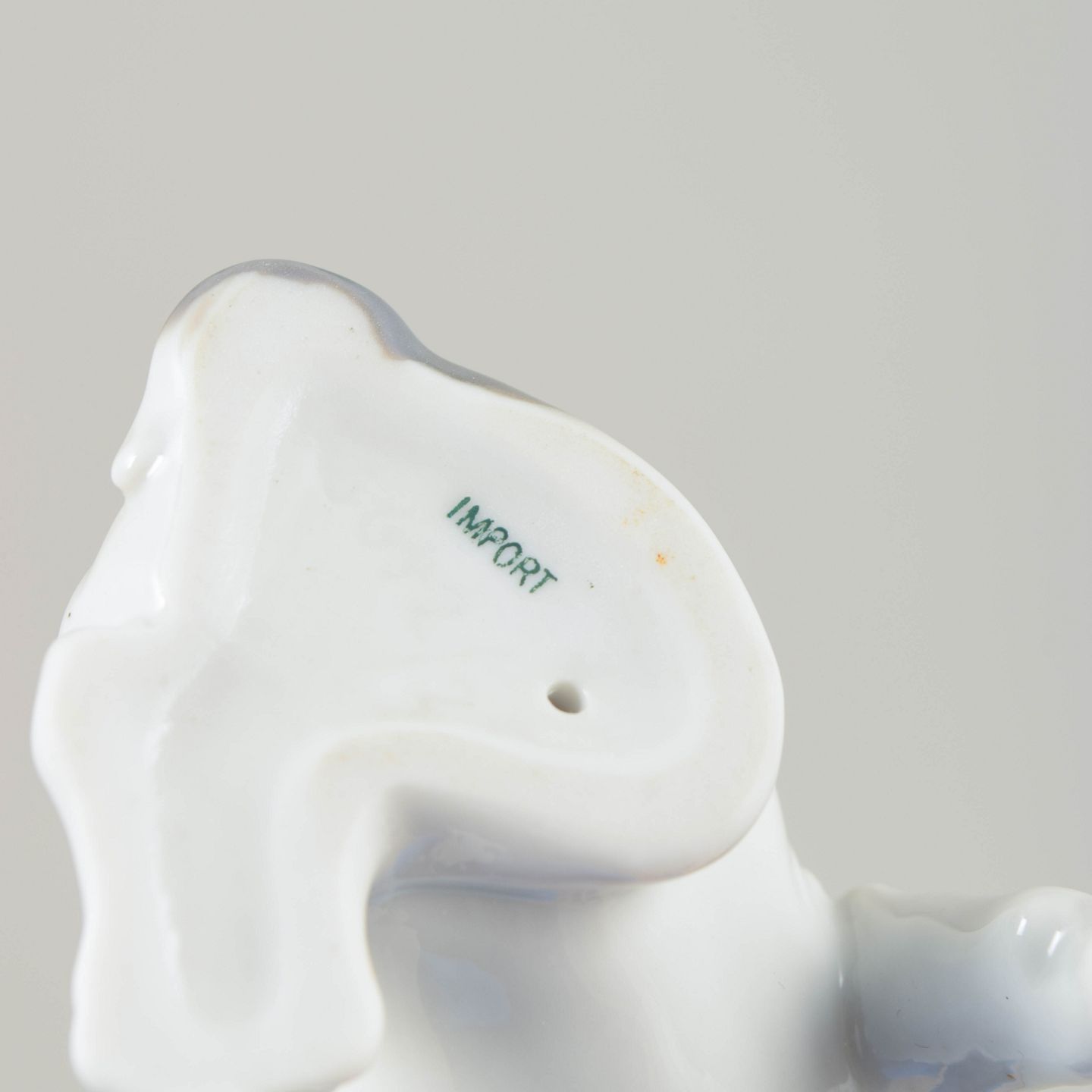 European porcelain figurine, French bulldog.Naturalistically modelled porcelain figure of a French bulldog with hand-painted details in grey, white and pink tones.