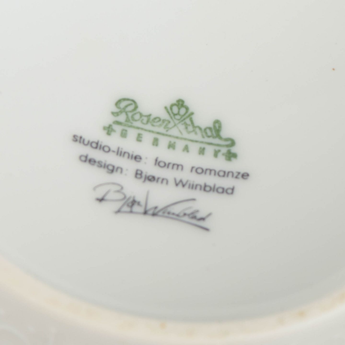 Bjørn Wiinblad (1918–2006) var en dansk kunstner og designer kendt for sit fantasifulde og dekorative formsprog. Han arbejdede med keramik, grafik, scenografi og design og samarbejdede blandt andet med Rosenthal, hvor han skabte nogle af sine mest ikoniske porcelænsserier. Hans værker er præget af eventyrlige motiver, organiske linjer og en tydelig personlig stil.