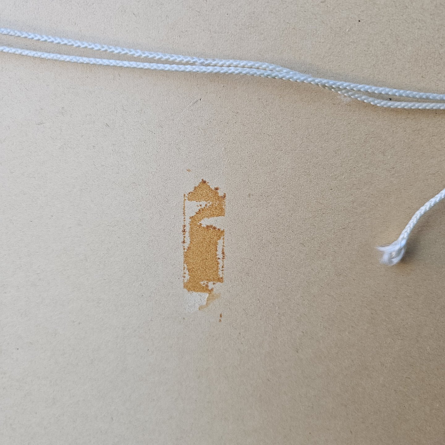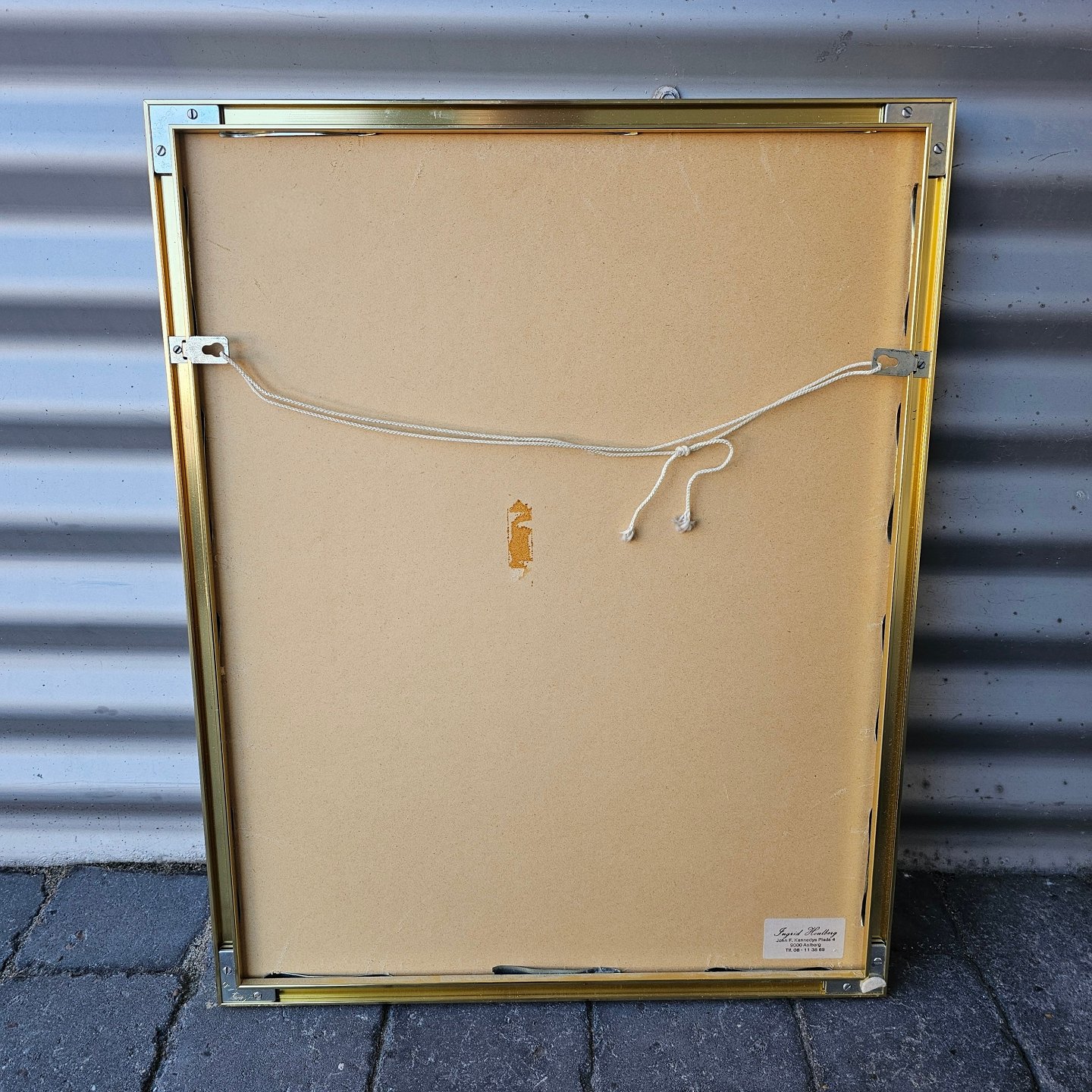 Tryk på papir med motiv af en kvinde i grønne nuancer. Monteret i metalramme, dateret 1981Kunstner Ingrid Houlberg, signeret
