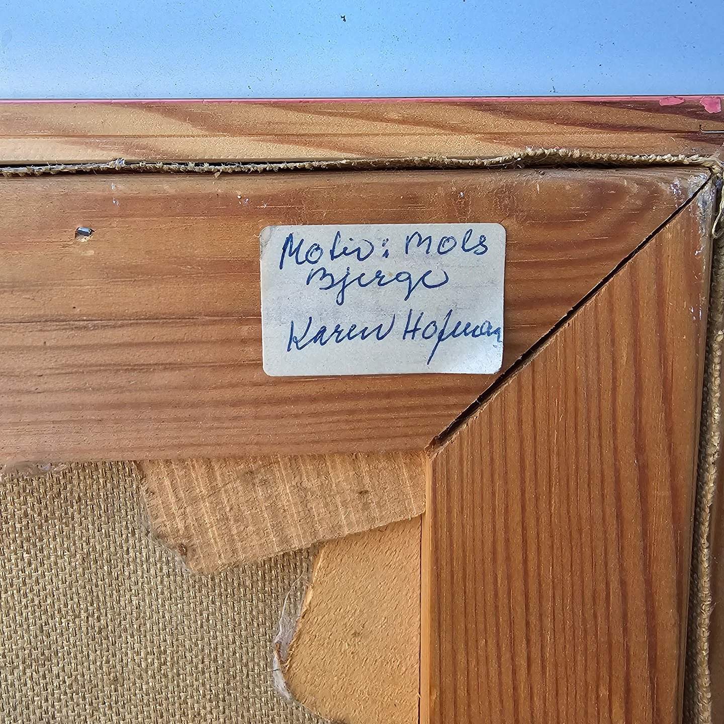 Oliemaleri på lærred med motiv af Mols Bjerge monteret i guldmalet trærammeKunstner Karen Hofman, ikke signeret