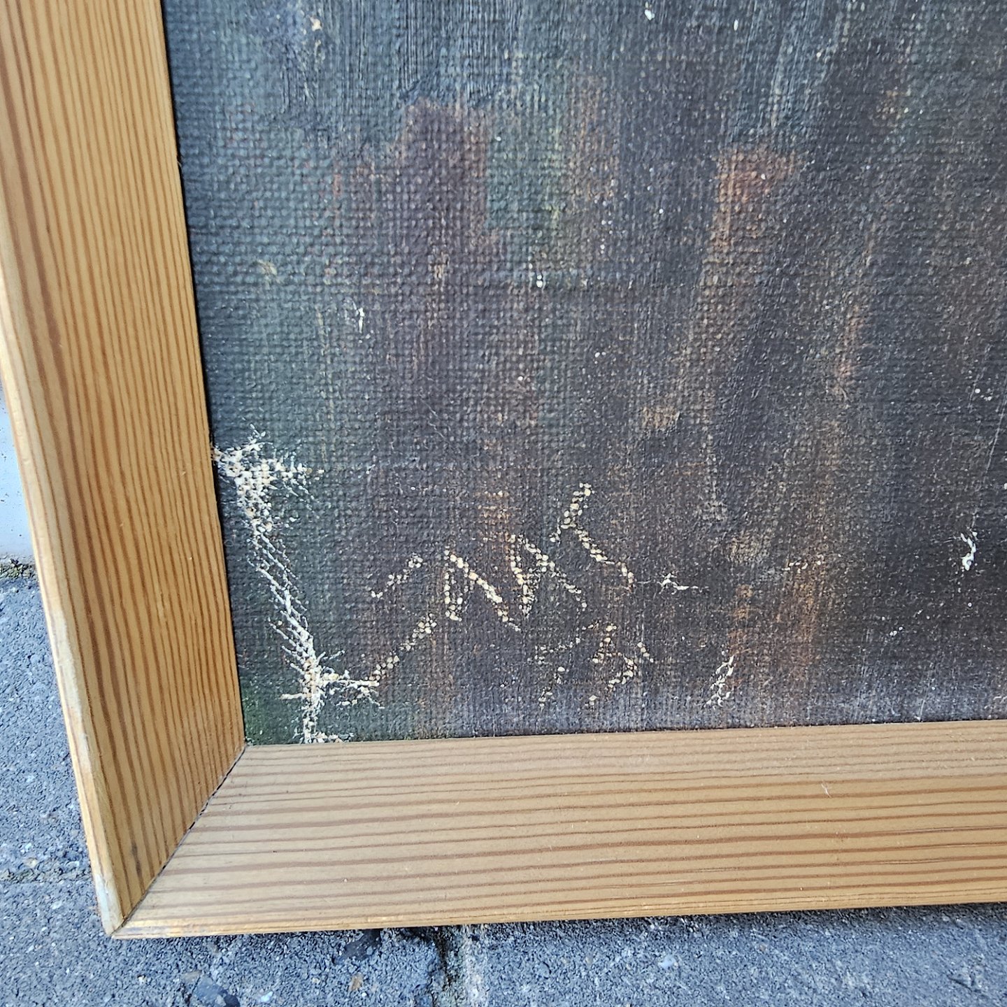 Oliemaleri på lærred med motiv af en kirke i et landsby landskab. Monteret i trærammeKunstner Svend Aage Tauscher (1911-1982), signeret