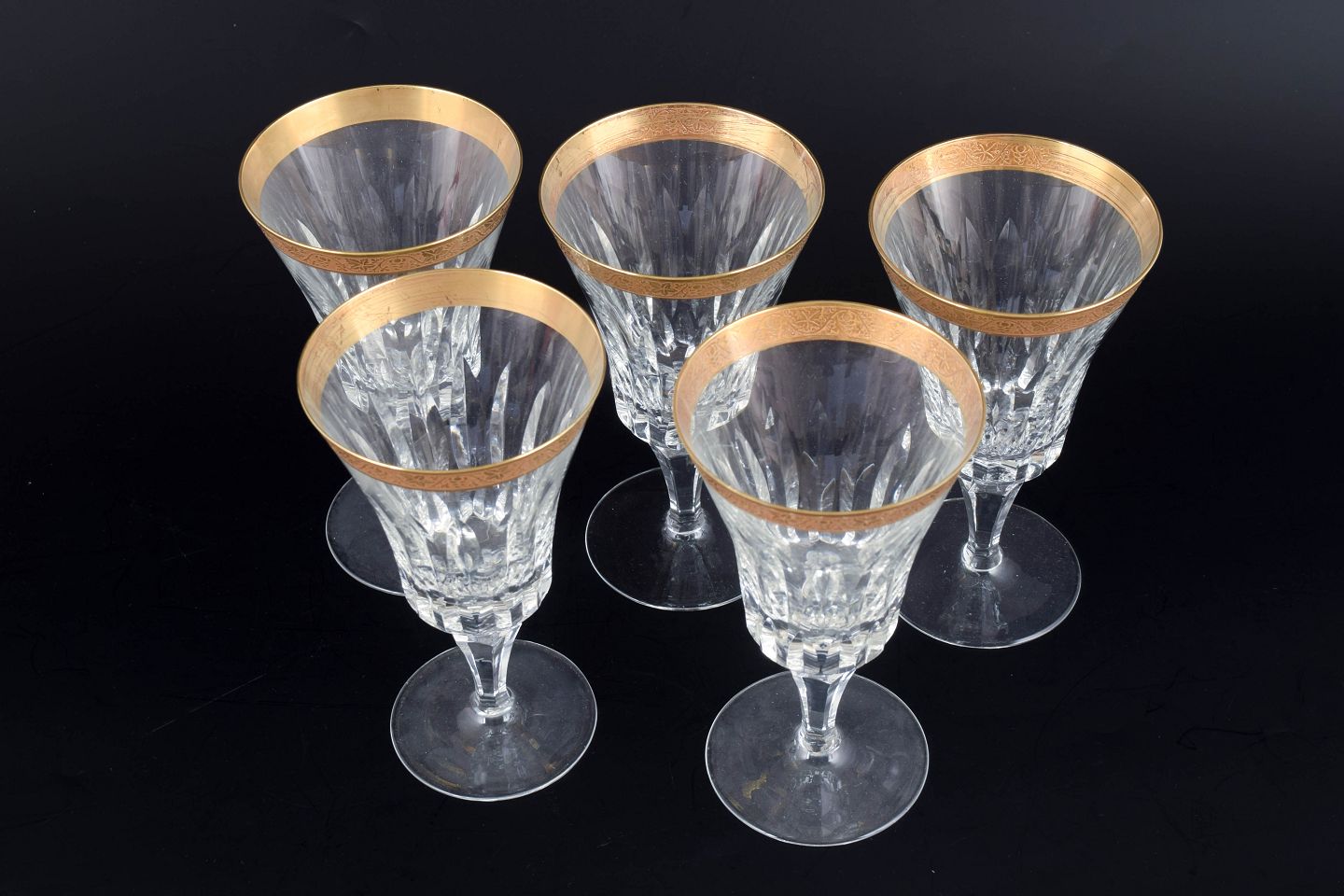 Artemisia, sæt af seks rødvinsglas.Elegante rødvinsglas i facetslebet krystal med dekoration i 24 karat guld langs kanten, udført i klassisk midten af det 20. århundrede stil.