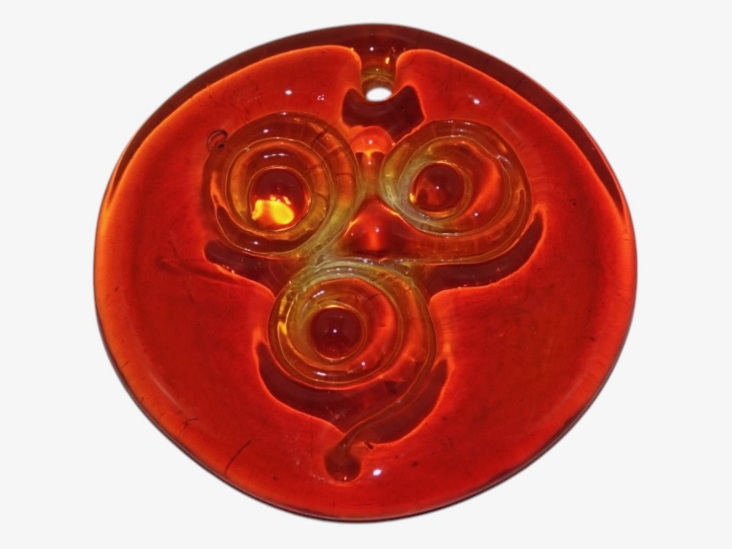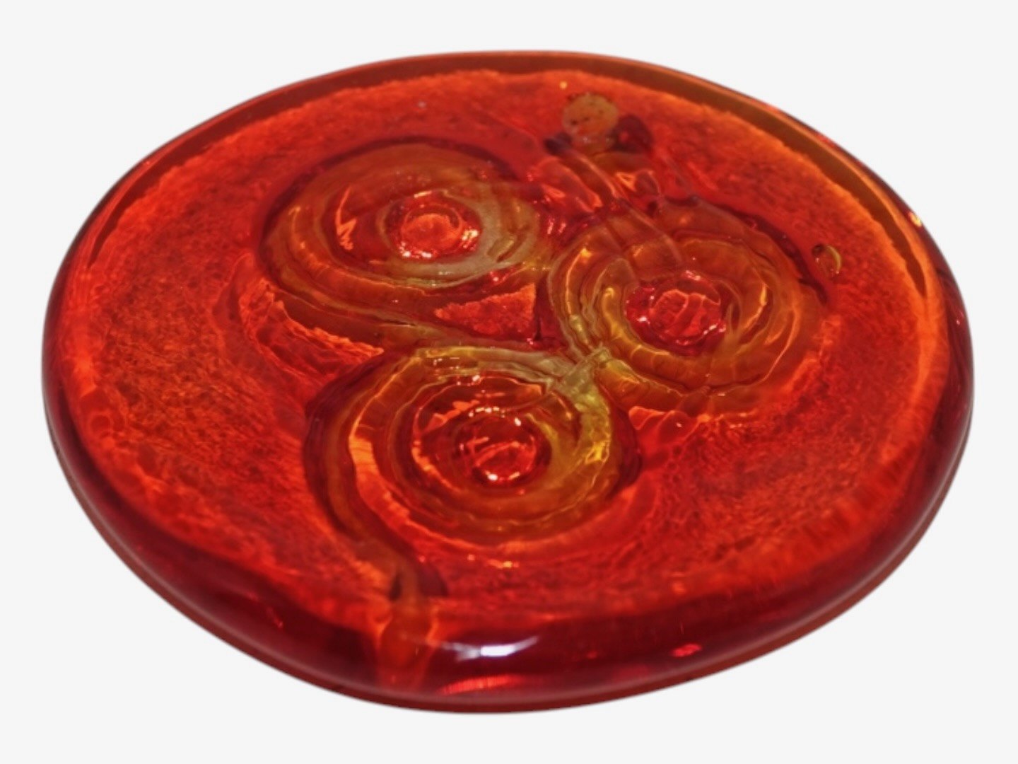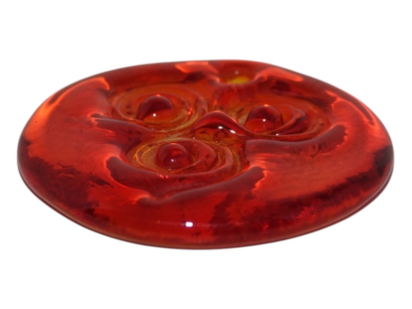Holmegaard, miniature rød solfanger fra 1970'erne.Diameter 5,5 cm.