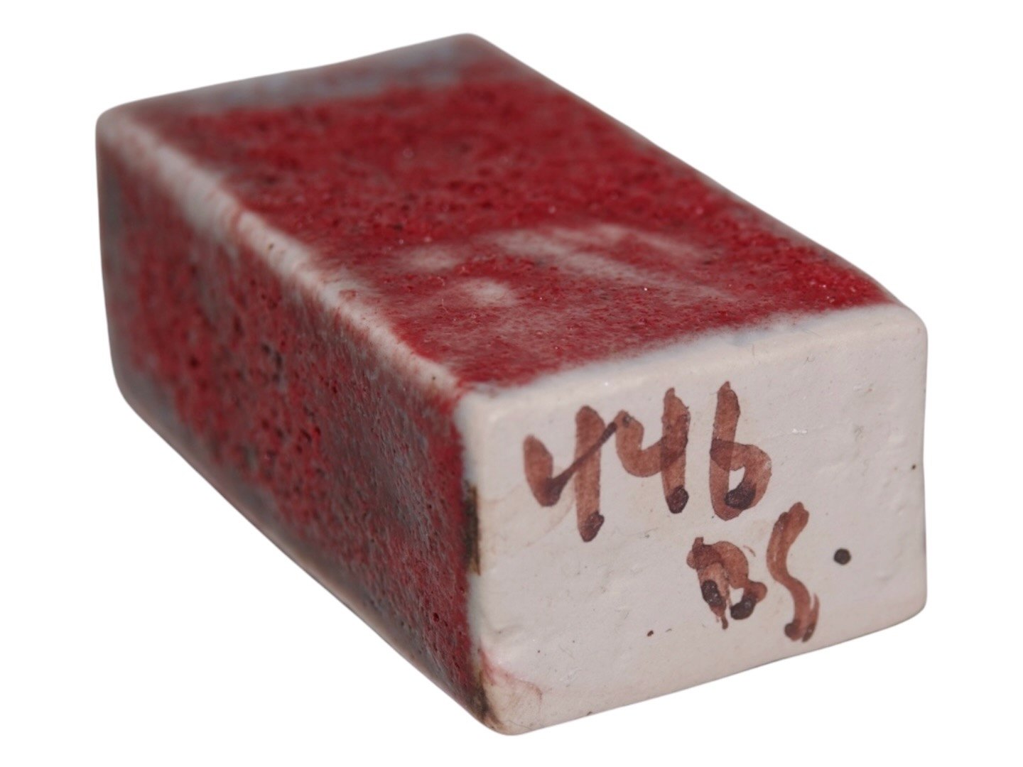 Bente Skjøttgaard keramik, miniature vase med rød lavaglasur.Mærket med nummer 446.