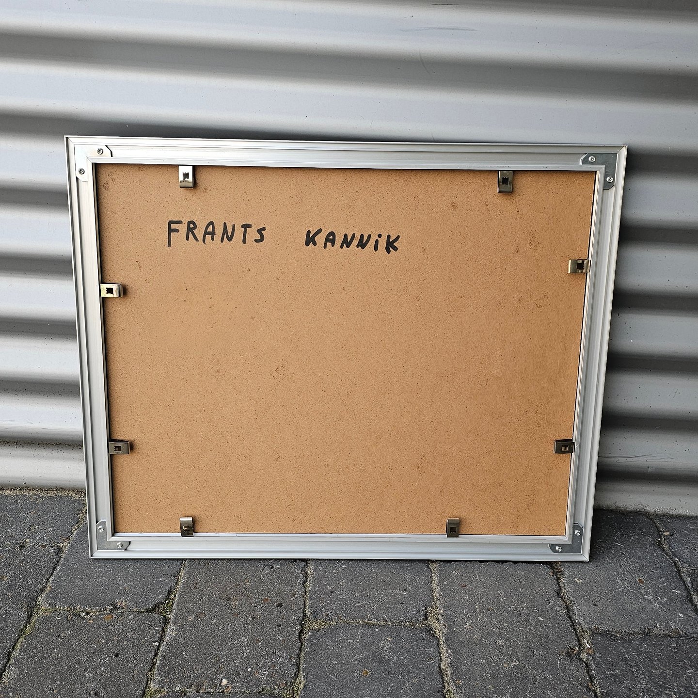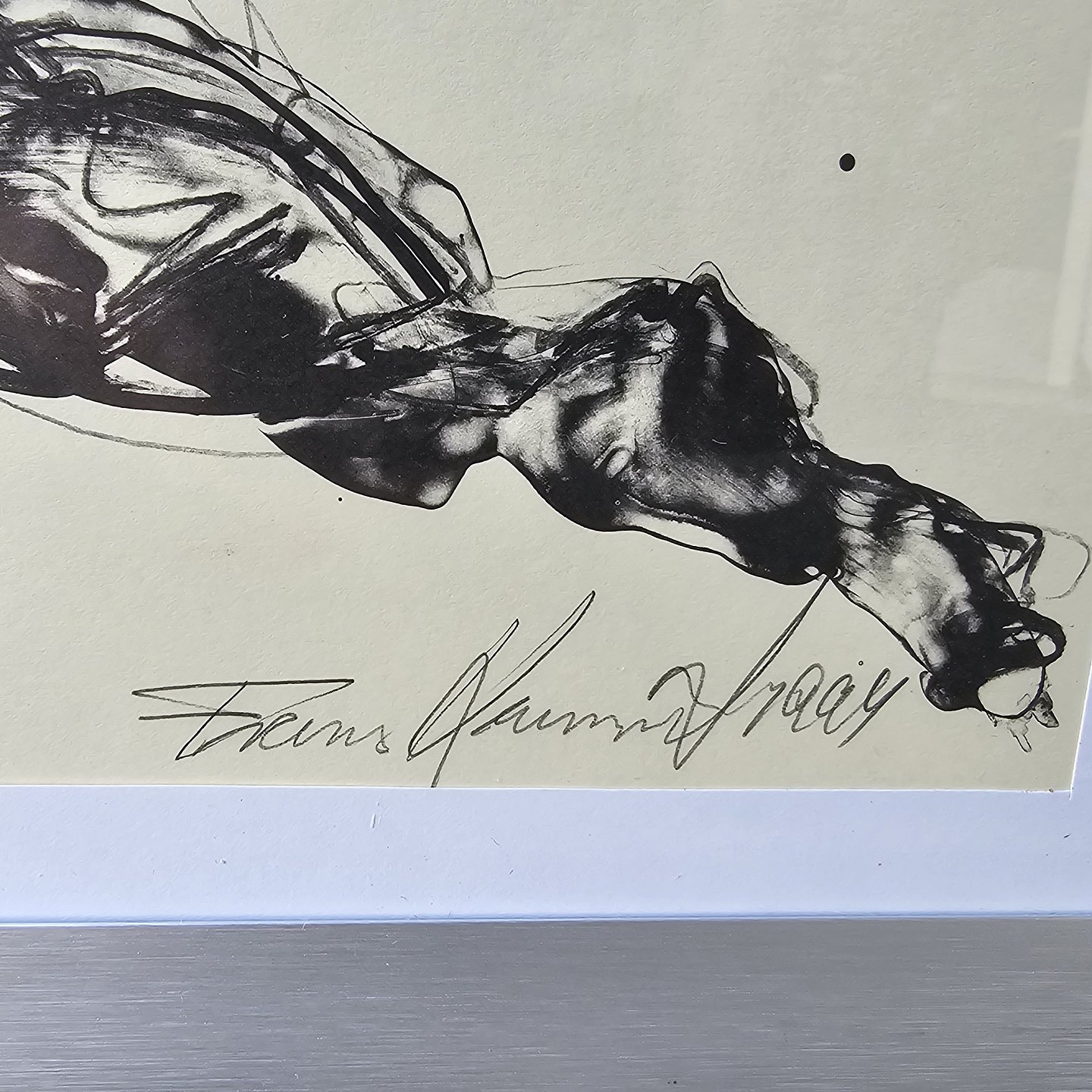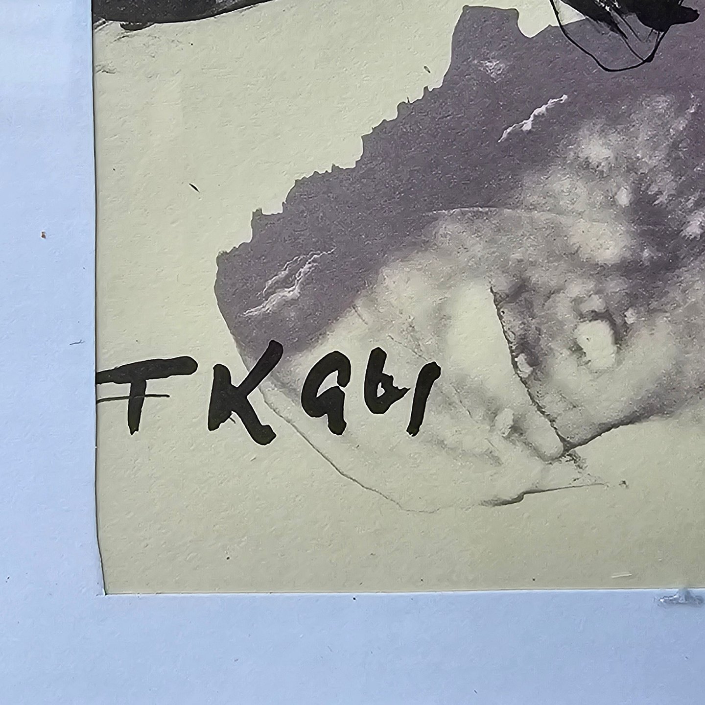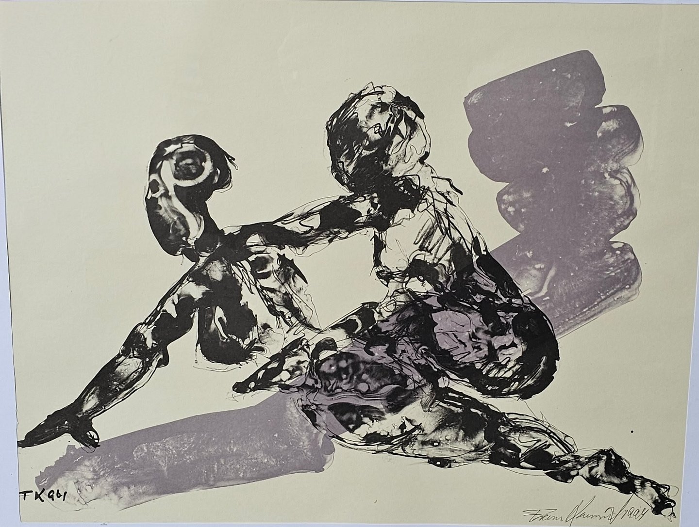 Akvaral på papir med abstrakt motiv af to mennesker i sort og grå. Monteret i sølvrammeKunstner Frans Kannik (1949-2011), signeret