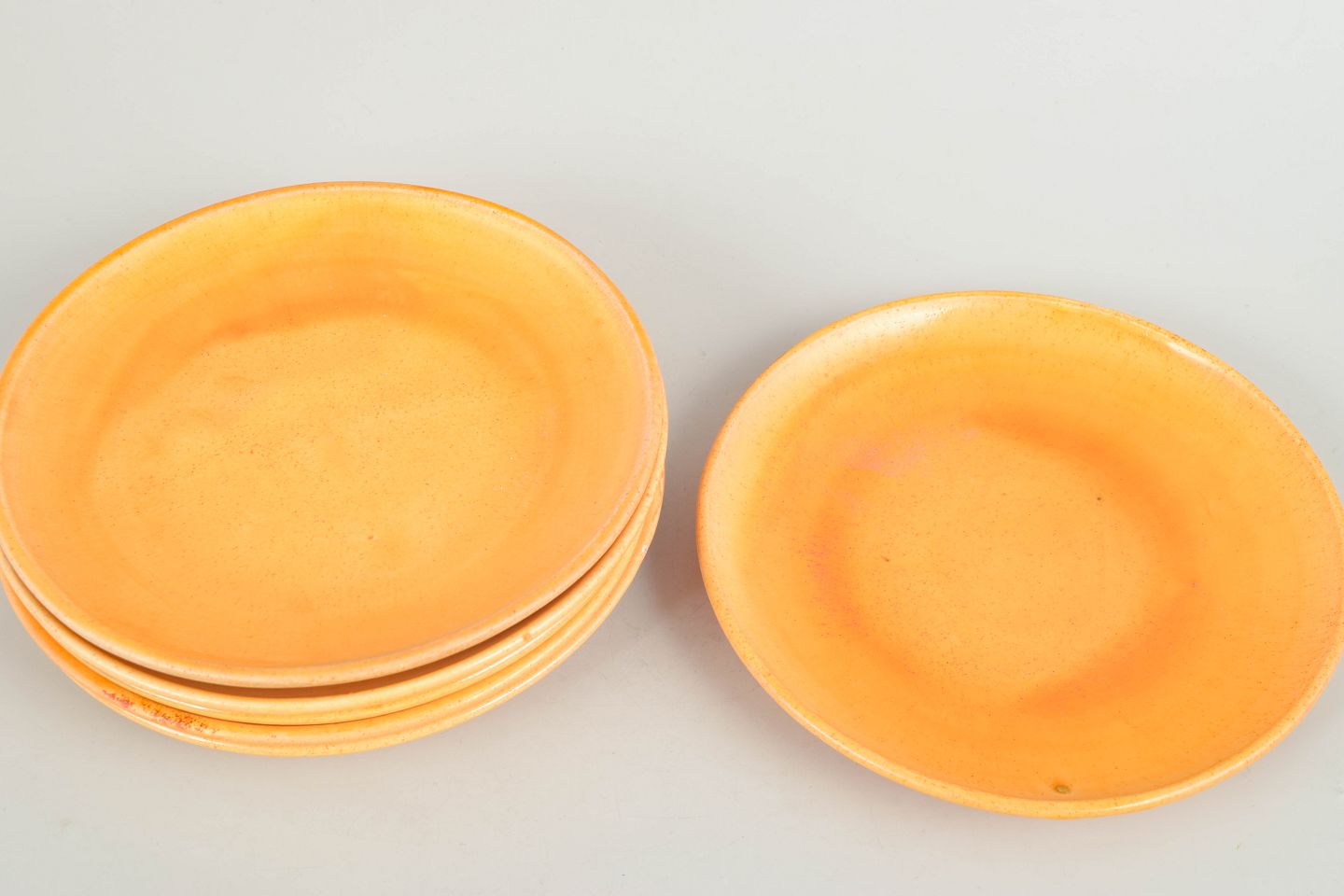 Kähler, sæt af seks tallerkener.Seks keramiske tallerkener med uranholdig glasur i varme gyldne toner, fremstillet hos Kähler i 1930’erne.