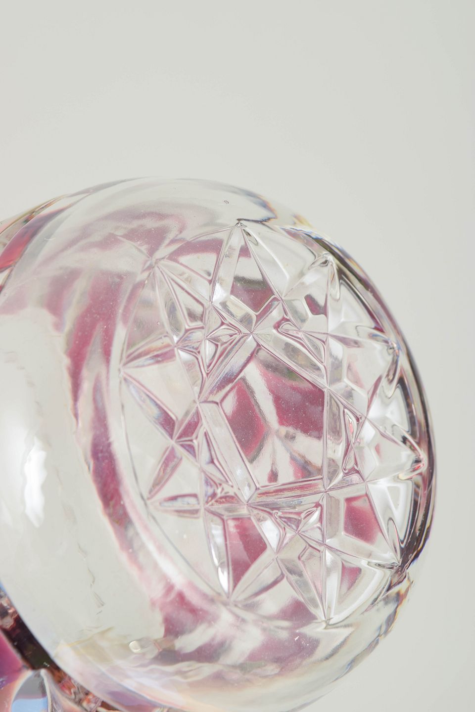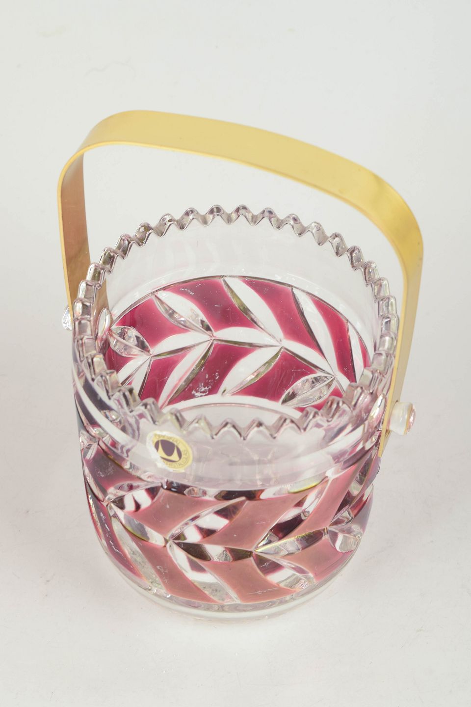 Bøhmisk krystalglas, isspand.Presset og slebet krystal i klart og rosa tonet glas med geometrisk slebet mønster, med håndtag i messing og original mærkat.