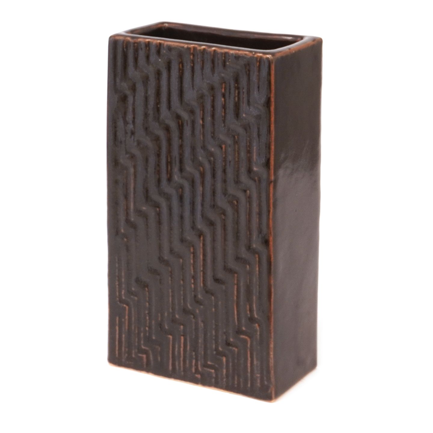 Eva Stæhr-Nielsen for Royal Copenhagen firkantet stentøjsvase med mønster i relief 22326Signeret