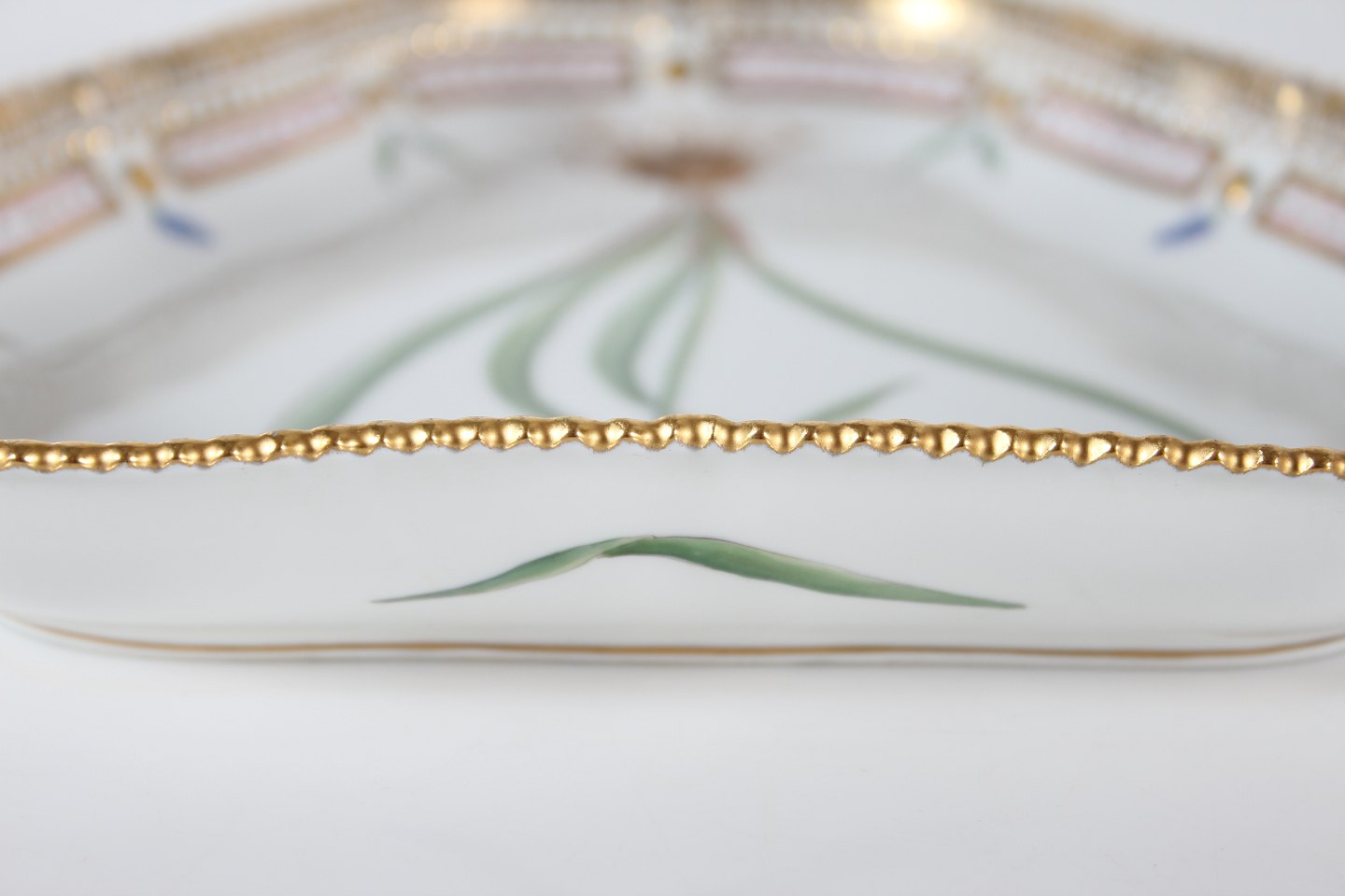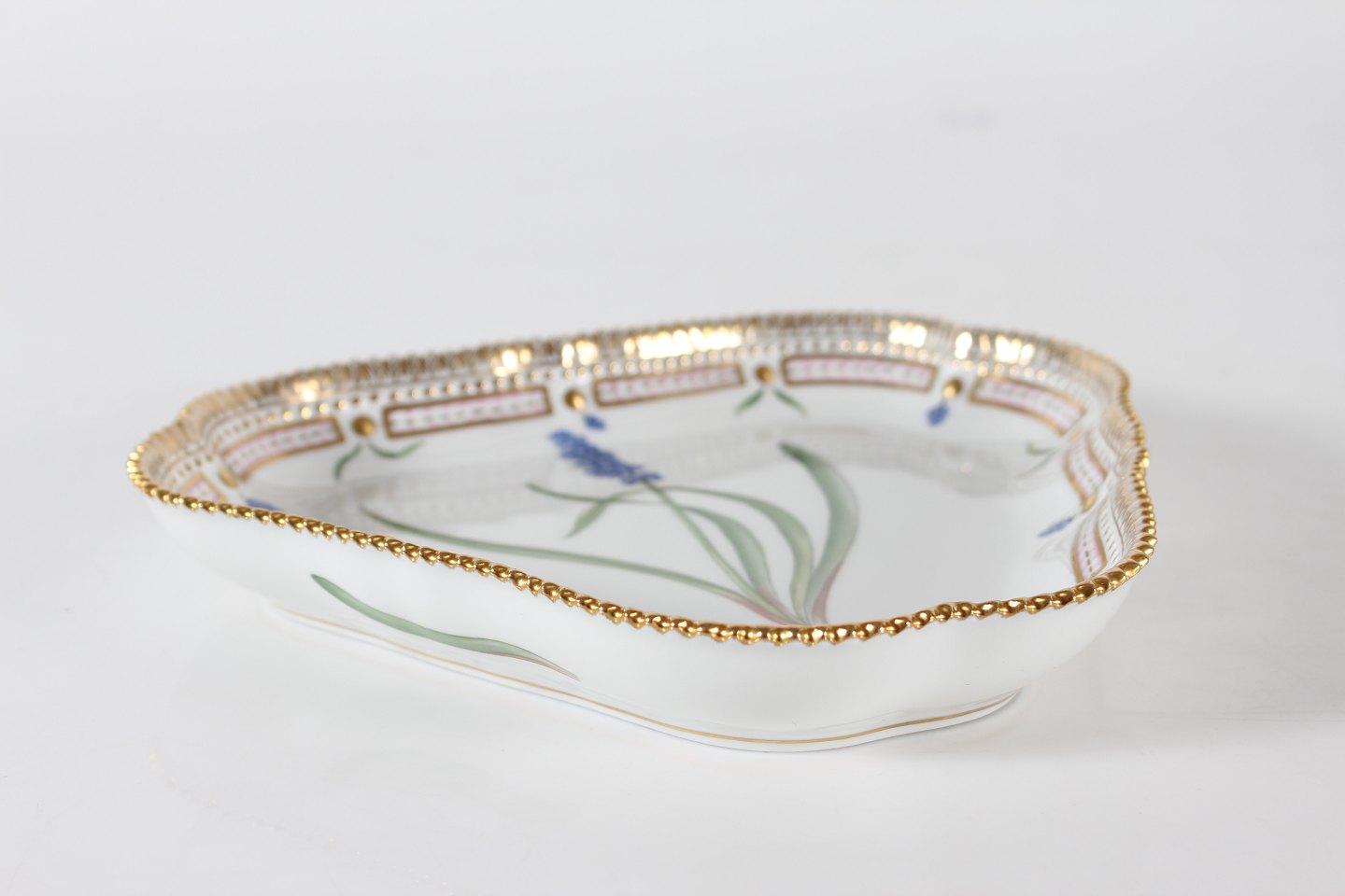 Royal Copenhagen Flora DanicaLav trekantet skål 20/3508 dekoreret med blomster