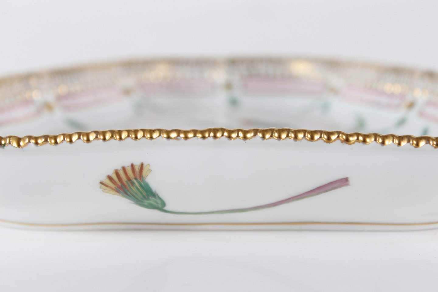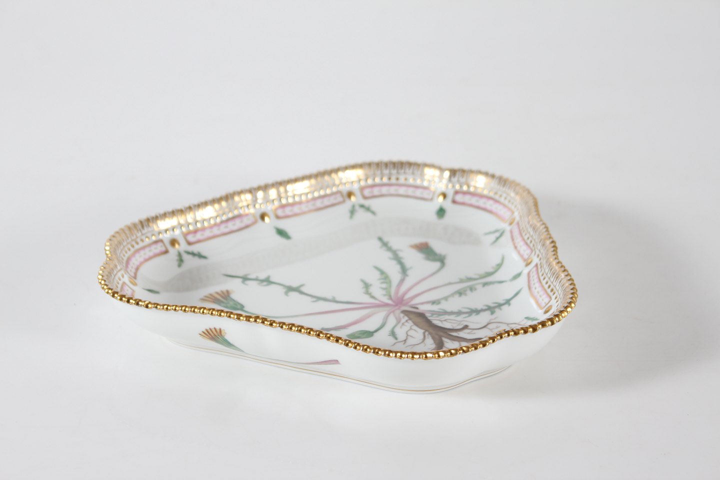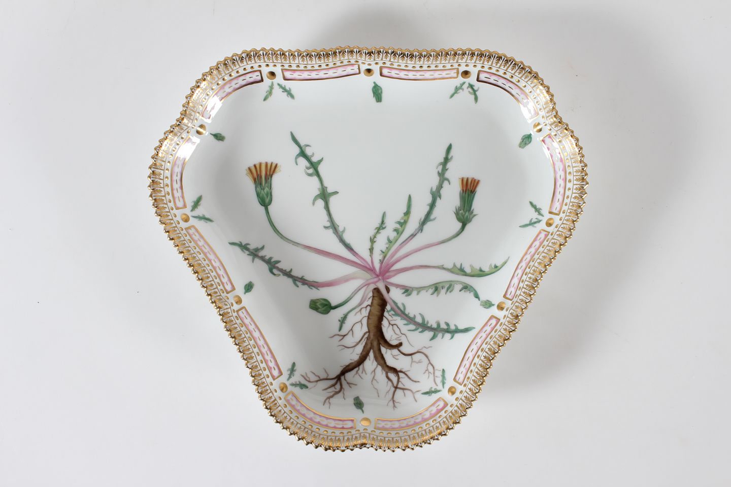 Royal Copenhagen Flora DanicaLav trekantet skål 20/3508 dekoreret med blomster