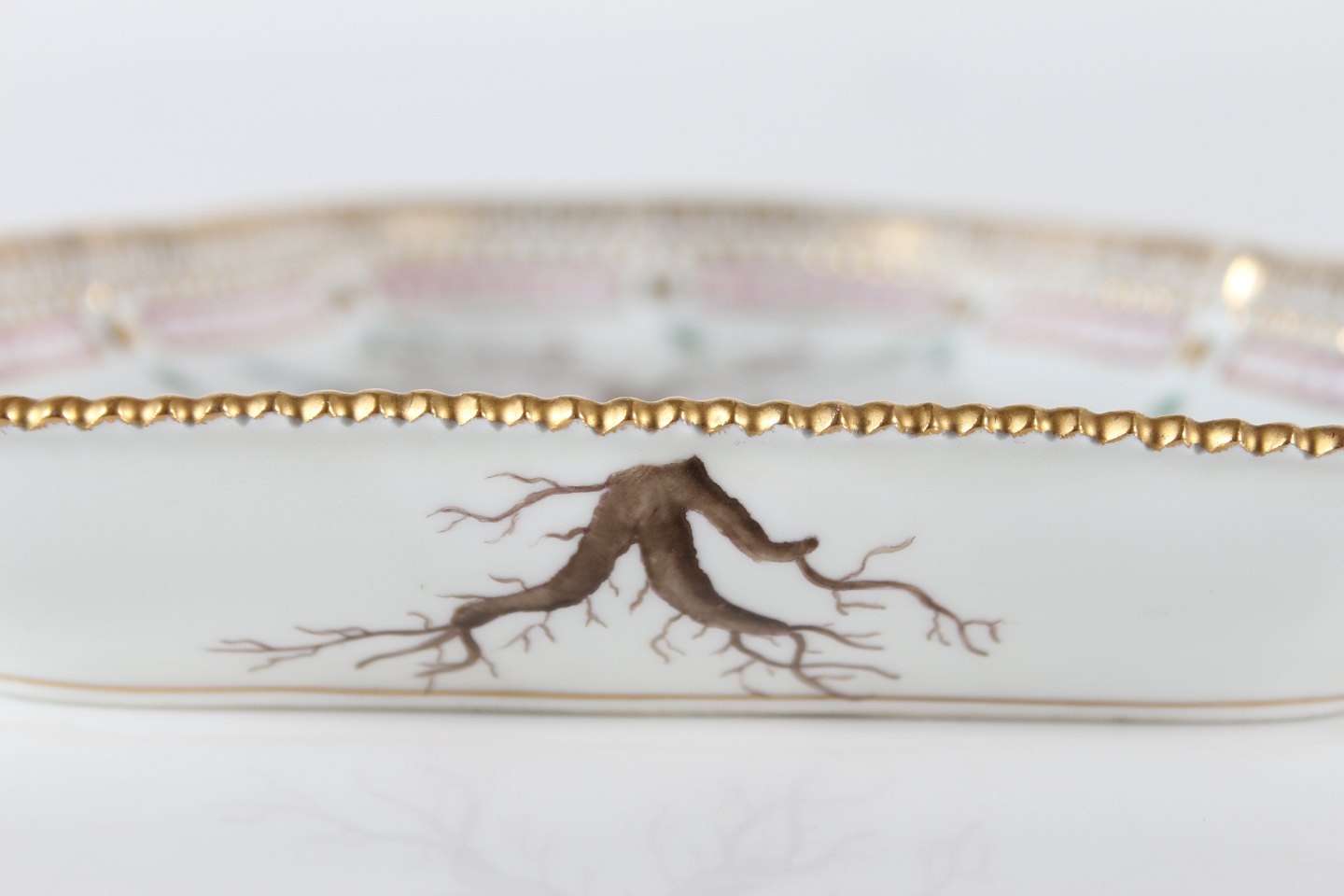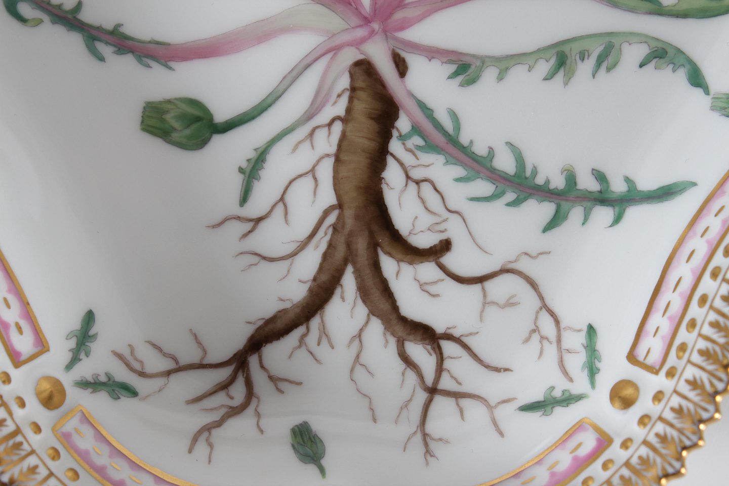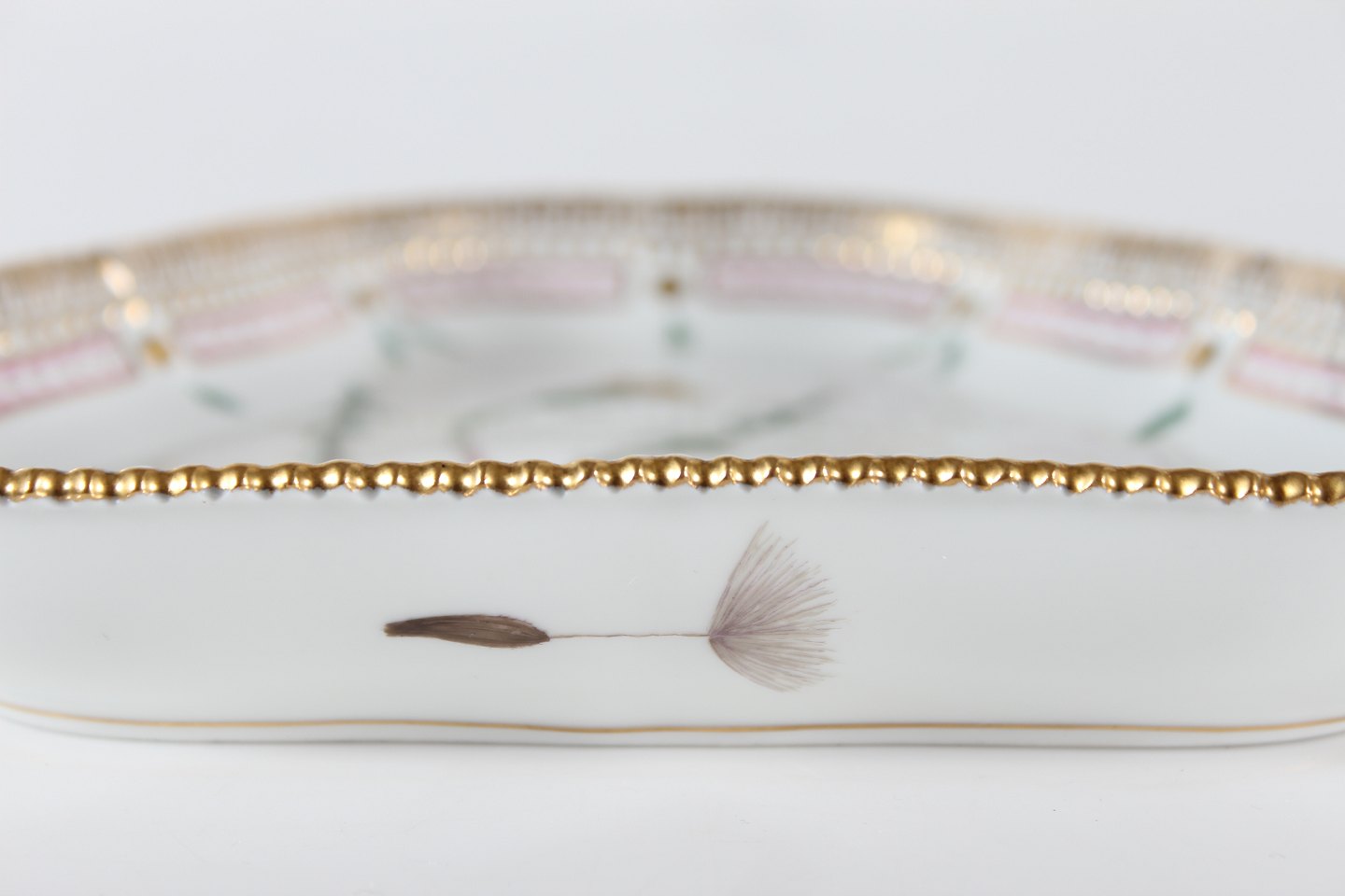 Royal Copenhagen Flora DanicaLav trekantet skål 20/3508 dekoreret med blomster