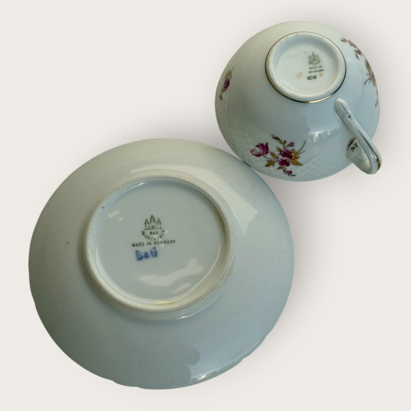 Bing & Grøndahl, Røde blomster med guld blade guldkant, Tekop sæt #108, 4,7cm høj, 10cm i diameter, 1.sortering *Pæn brugt stand*Lager: 8