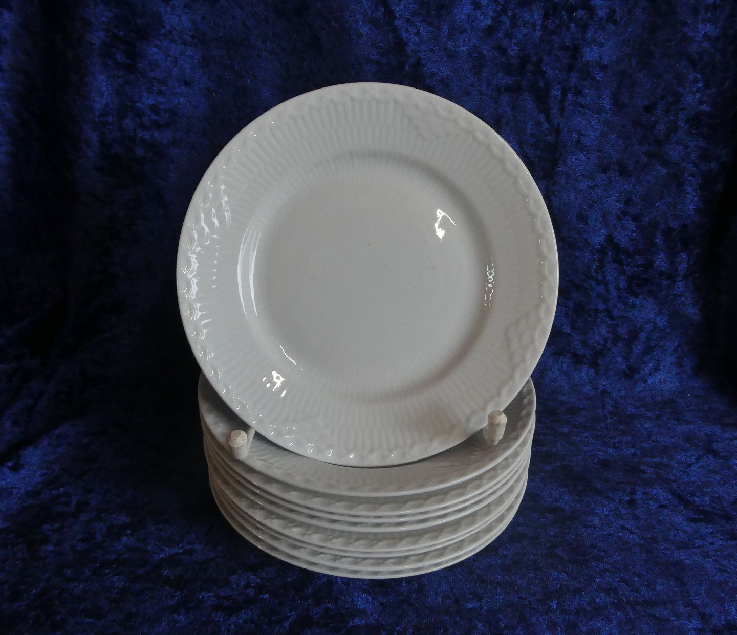 Hvid Halvblonde Royal Copenhagen porcelæn spisestel. Kongelig porcelæn.Sæt på 9 sidetallerkener i 2. sort. uden nr. i pæn, brugt stand stand
