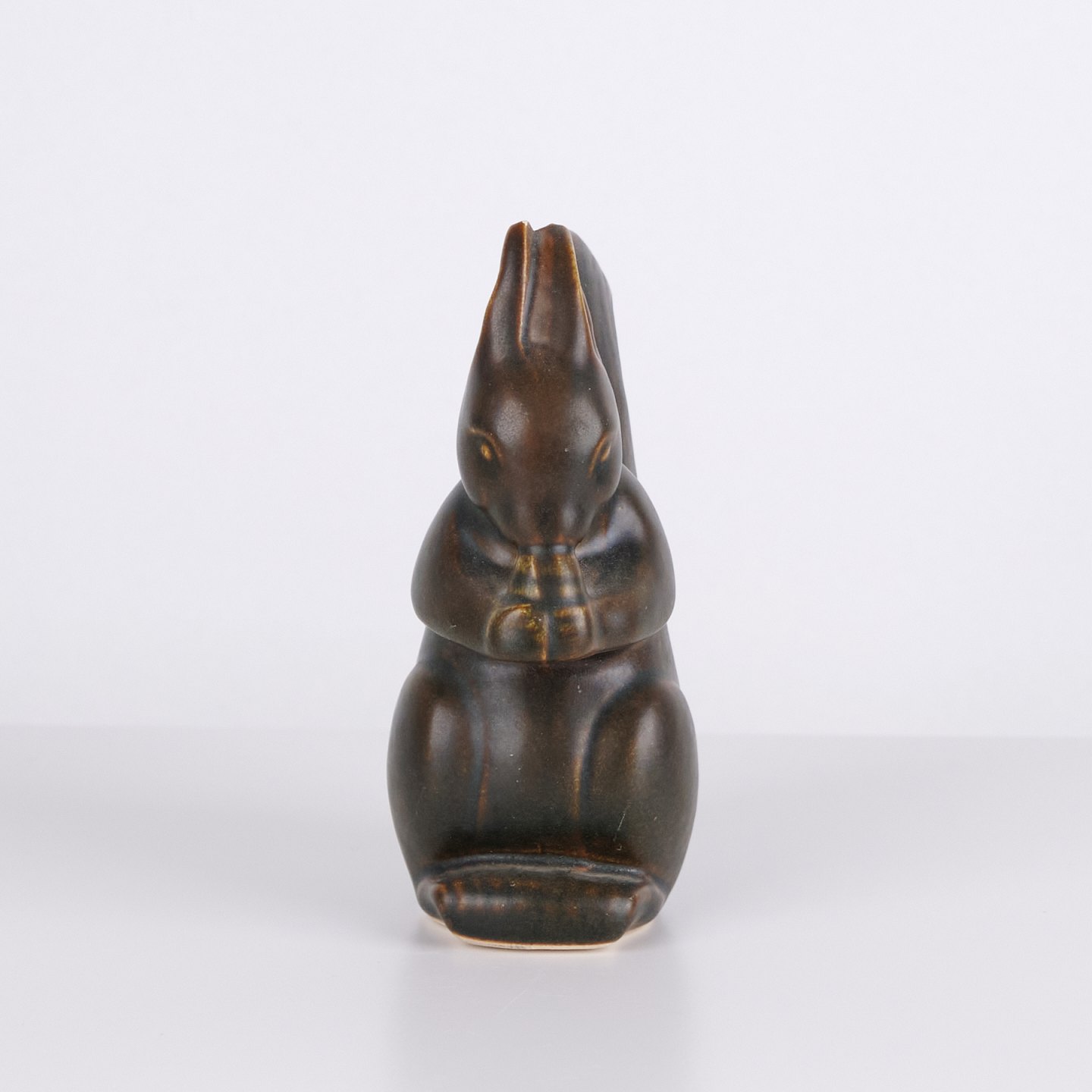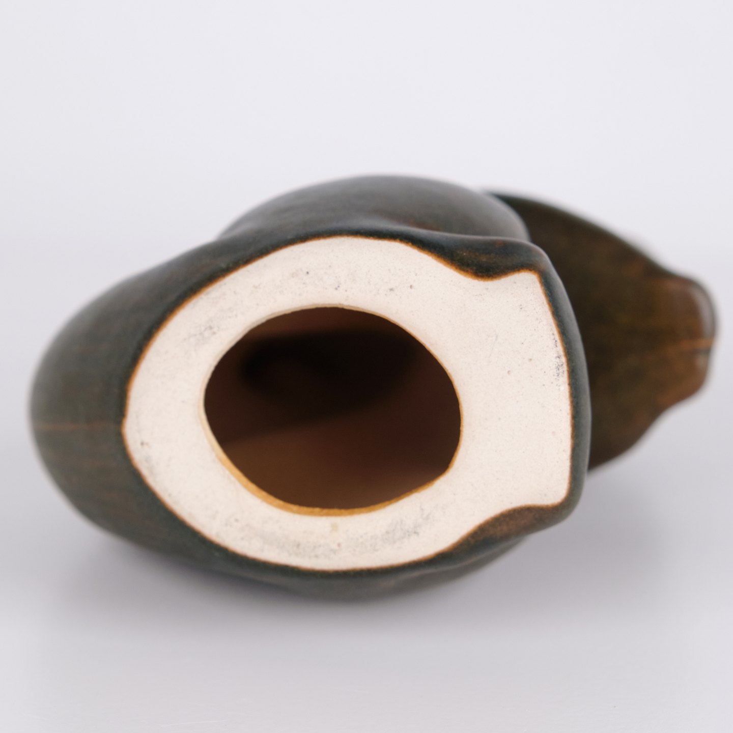 Knud Basse Egern Figur i Mørk Keramik med Nød, Dansk Design 1960erne
